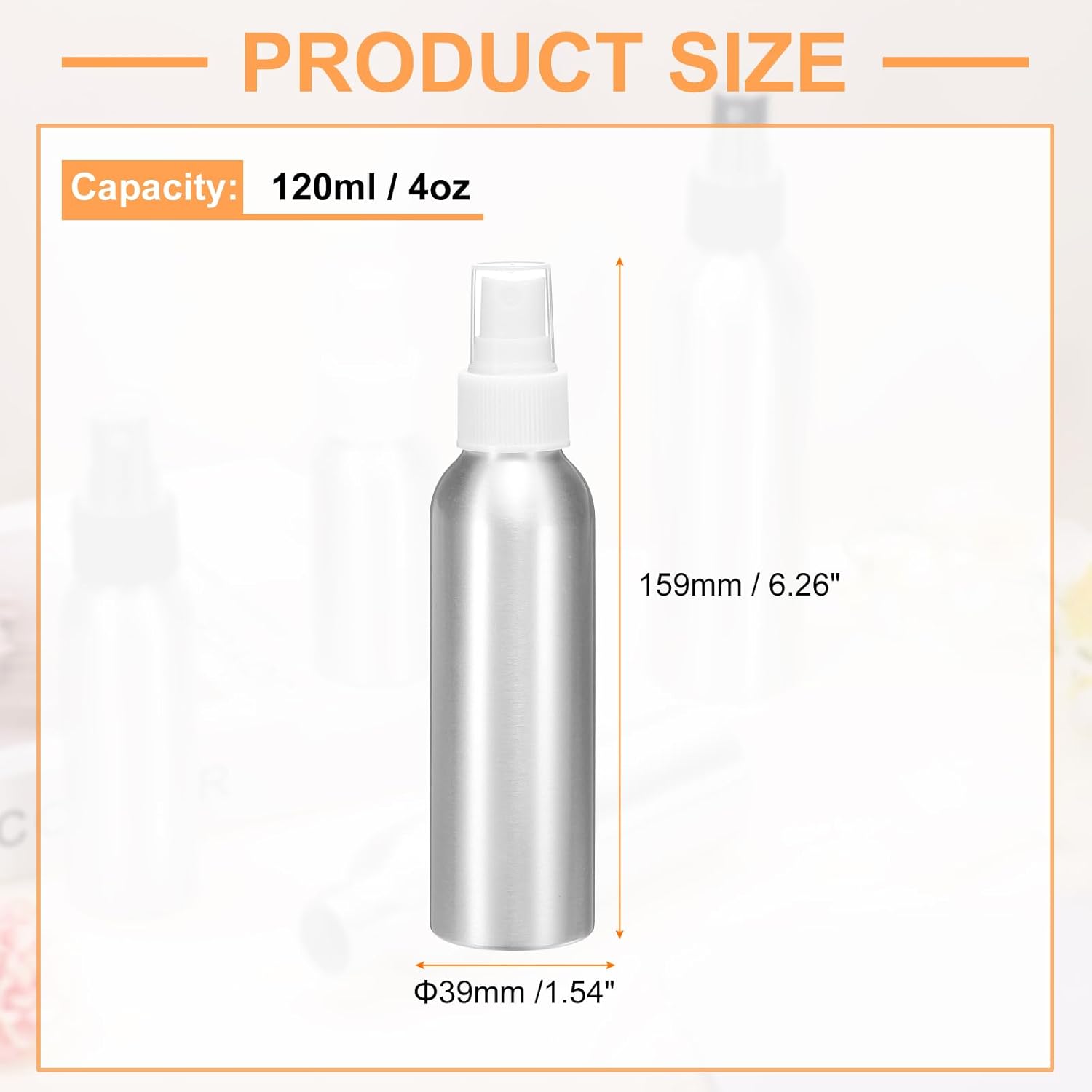 HARFINGTON Aluminum Fine Mist Spray Bottles 120ml/4oz Metal Small Liquid Alcohol Refillable Travel Container with White Plastic Nozzle Cap for Perfume Skincare Cosmetic Storage Bottle