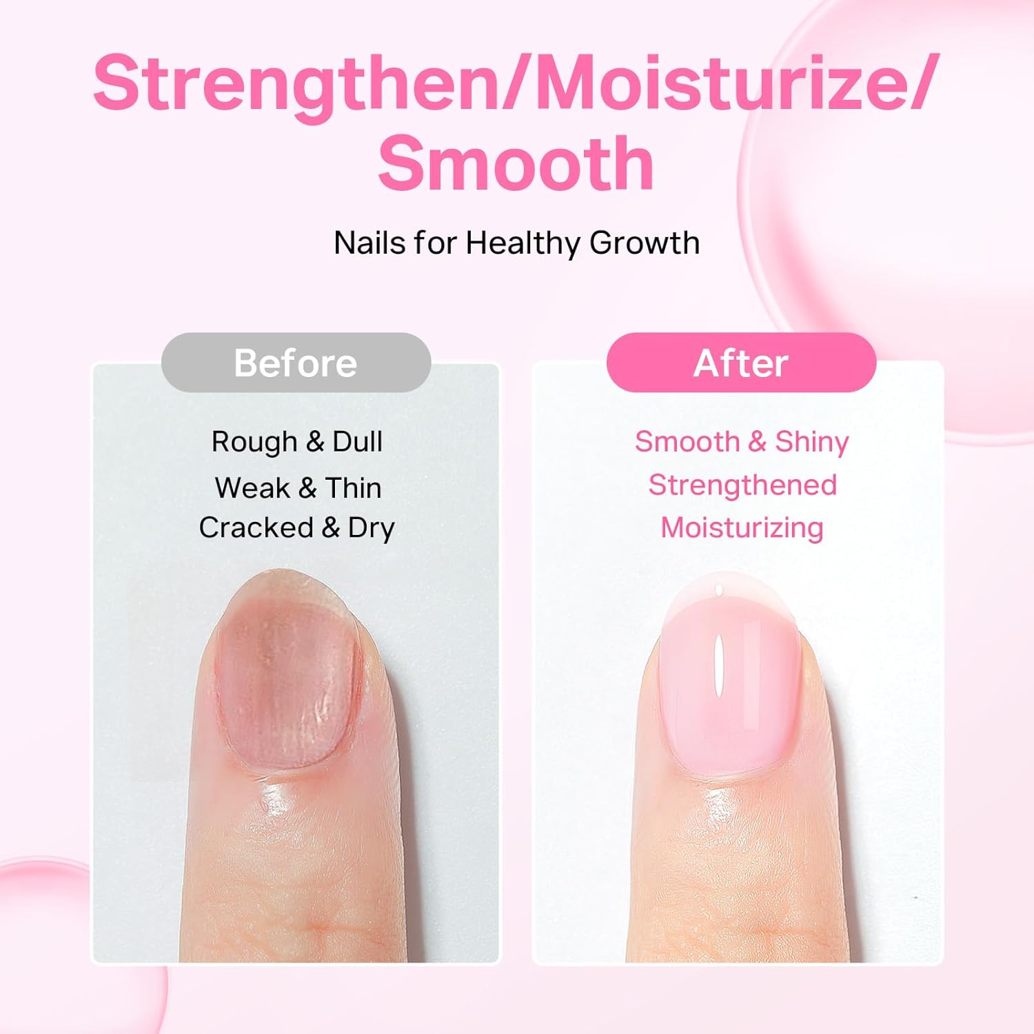 - Easy Application & Quick Drying: Apply two thin coats of the nail strengthener and allow each coat air dry for 2-3 minutes. This quick-drying formula minimizes UV damage while ensuring a hassle-free application process.