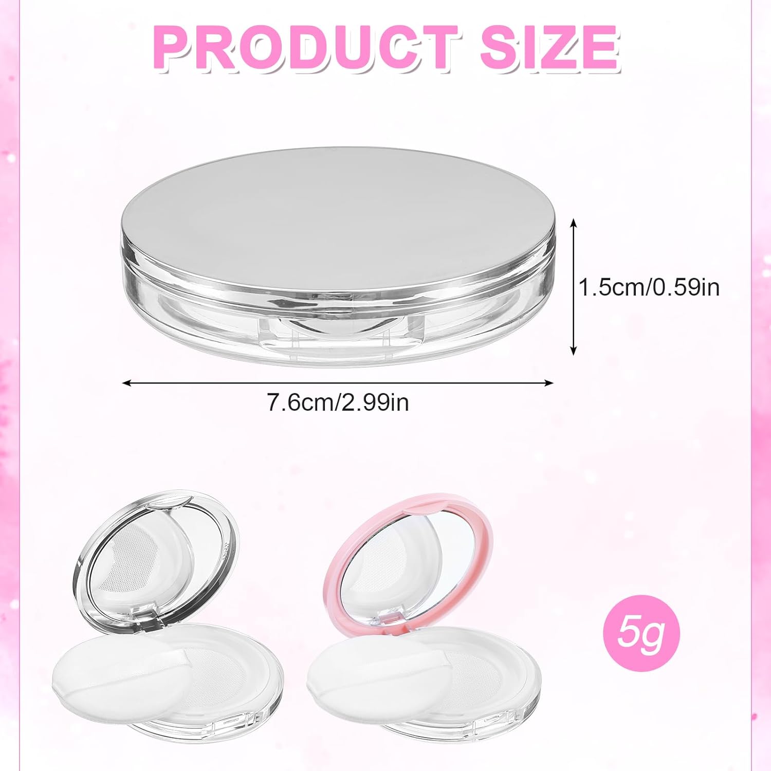 - 2 Powder containers: You will receive 2 empty powder boxes at one time, including one pearl pink and one mirror silver, to meet your needs. These two colors are not only beautiful, but also allow you to pack different cosmetics according to color, so that you can quickly and accurately find the cosmetics you need, saving your time. Whether you are out shopping or traveling a long distance, this powder container can help you easily carry the cosmetics you need
