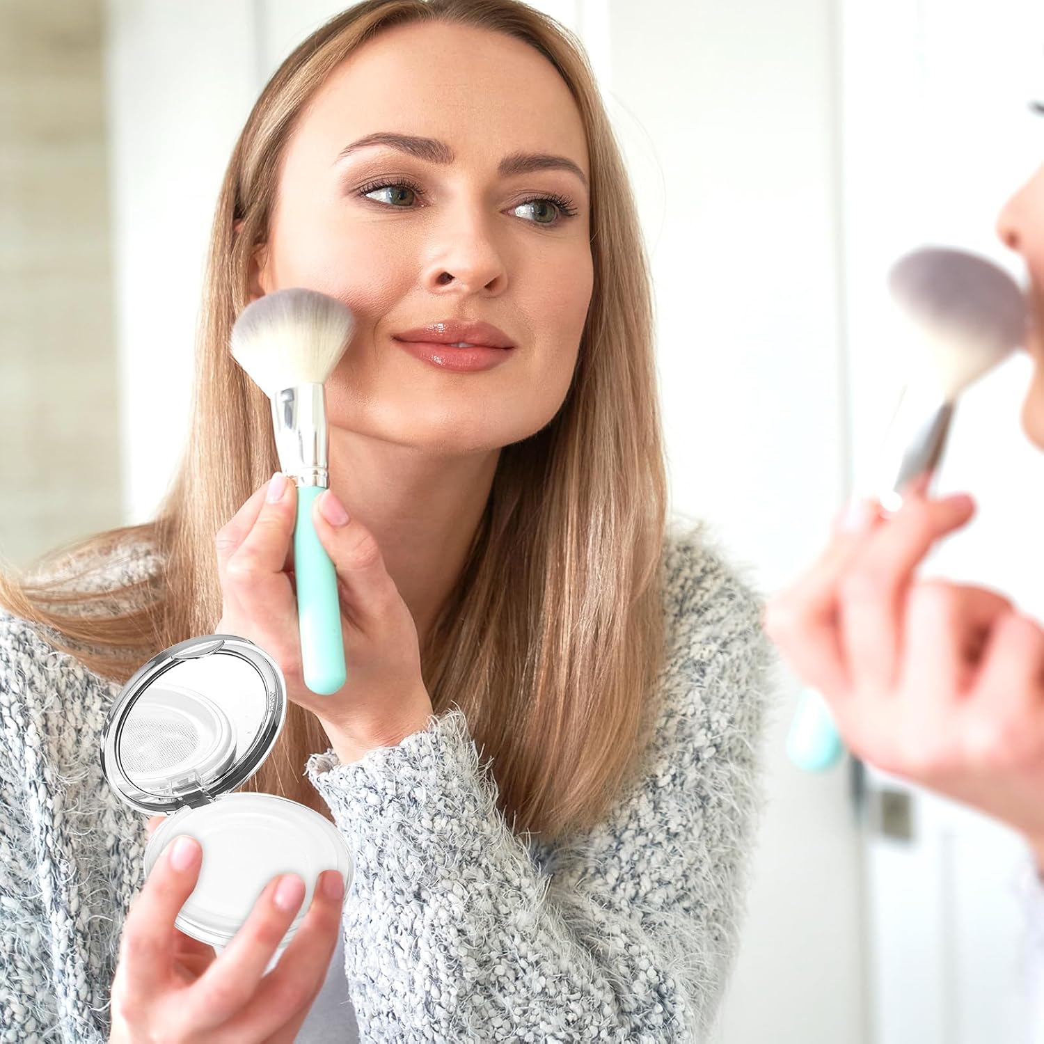- Thoughtful design: The makeup container is equipped with a powder puff, which is convenient for you to quickly touch up your makeup when needed. The powder puff is soft, comfortable, and gentle on the skin. The powder puff has excellent powder absorption and is equipped with a mesh filter to help you evenly apply loose powder for a natural and docile makeup. This loose powder box also comes with a mirror so that you can check your makeup when you touch up your makeup