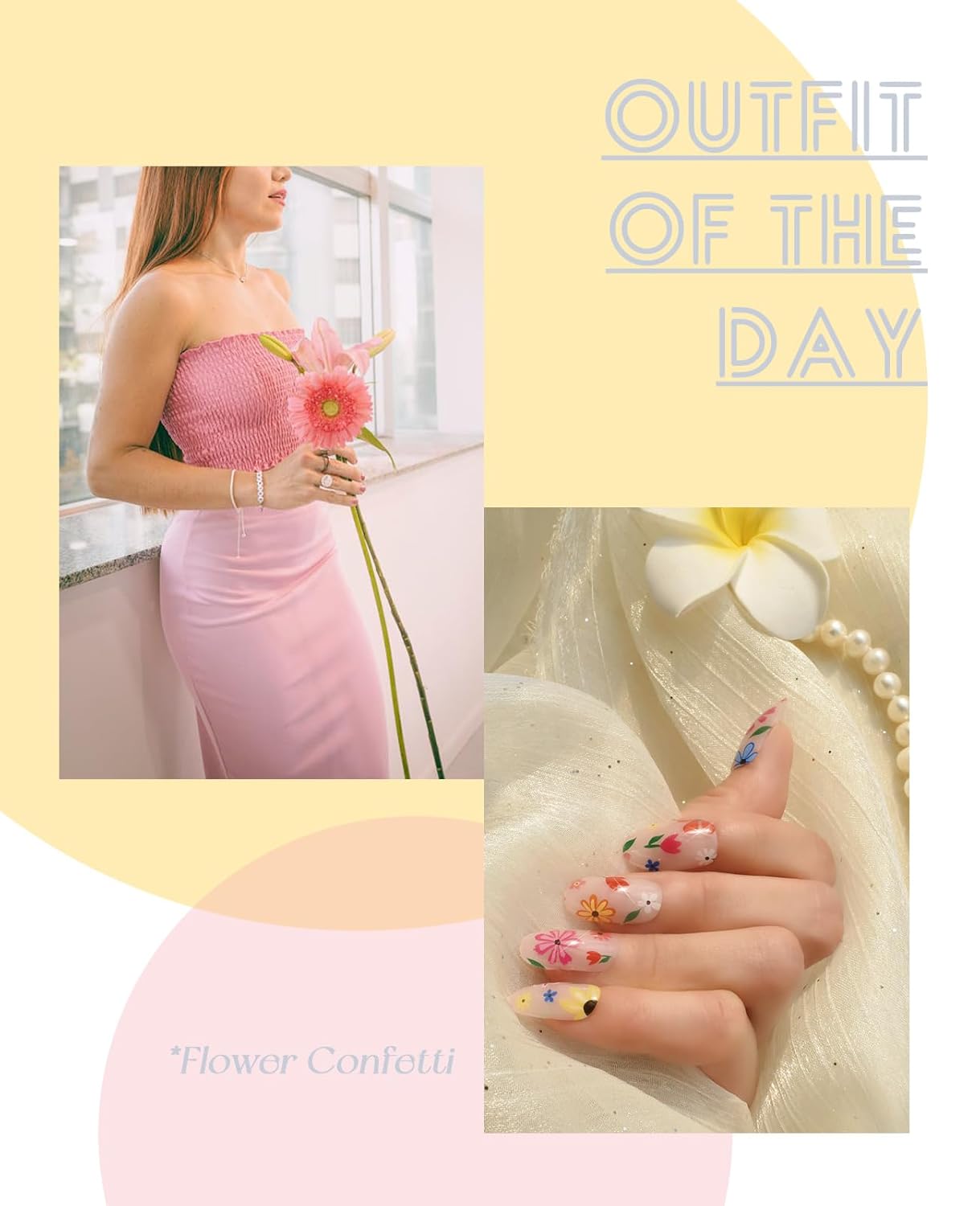 Semi Cured Gel Nail Strips, 20 pcs Nail Wraps, Glaze Stickers, Salon Quality French Manicure, Full Decal Gel Polish Strips, Long Lasting SCG, Easy on, UV Required (Flower Confetti)