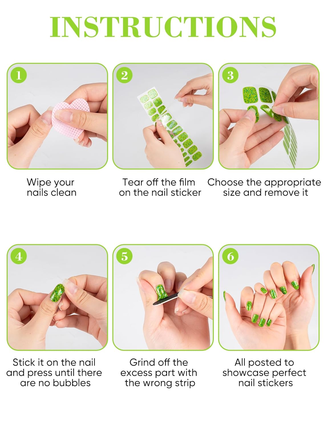 - Easy Application & Removal: No need to roughen your nail surface before applying. Simply clean your nails with the included tools, apply the stickers, and shape them with the nail file. Removal is effortless—just peel off without soaking