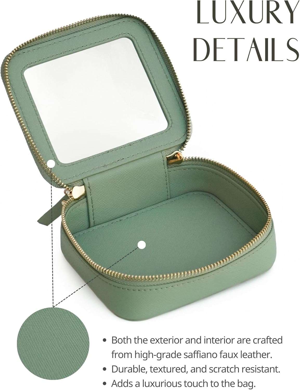 • [Mini but Mighty] – The green mini makeup bag measures 5'' x 4.7'' x 2'' (12.7cm x 12cm x 5cm), perfect for holding daily mini essentials including lip balms, hair ties, jewelry, Air Pods, charging cords and medications. Slip it into your purse, backpack, everyday tote or travelling bag for easy access to your must-have items.