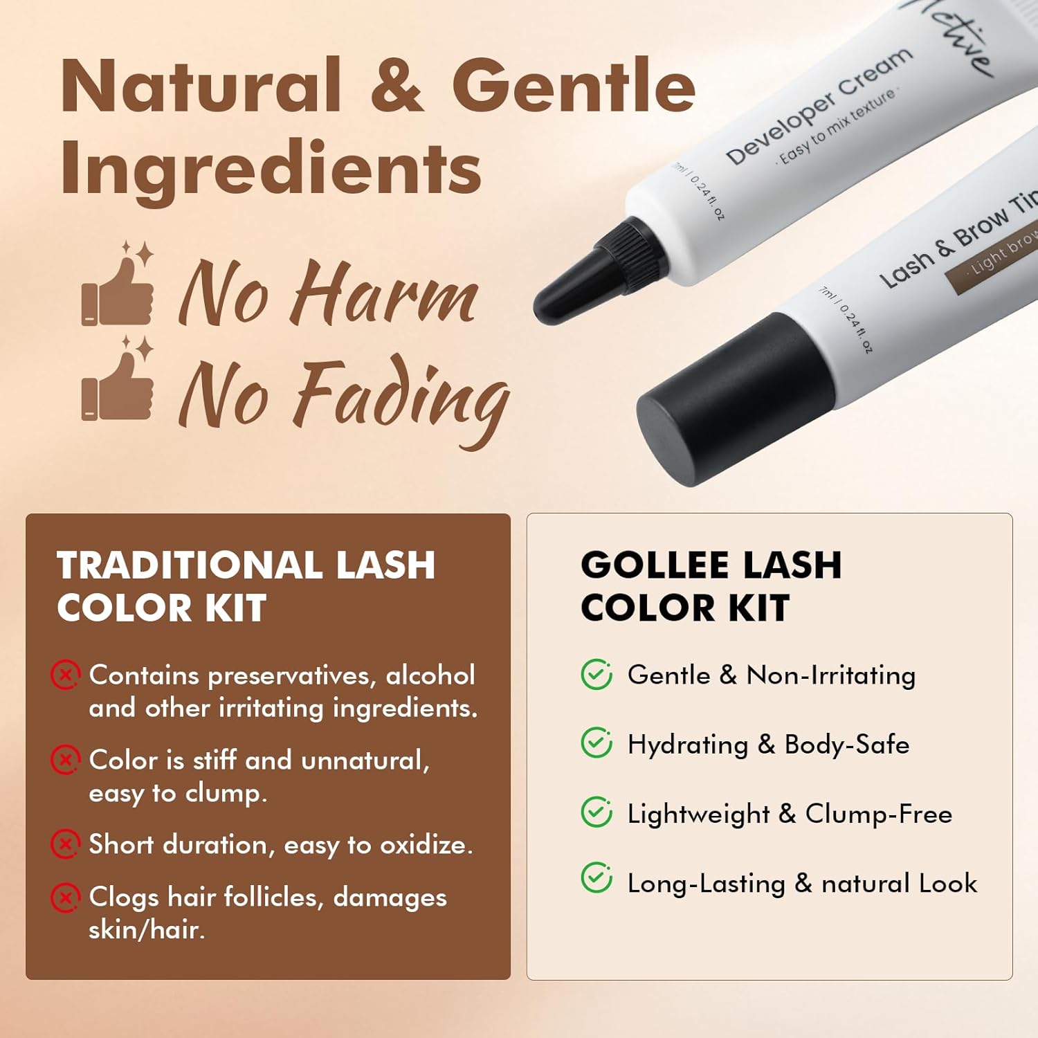 - 2-in-1 Professional Kit: Our 2-in-1 color kit is a versatile 2-in-1 solution, Ideal for both eyelashes and eyebrows. Ideal for those seeking a soft, natural look, the light brown shade complements fair to medium skin tones beautifully, creating a subtle yet striking enhancement. Say goodbye to lash extensions and heavy mascara.