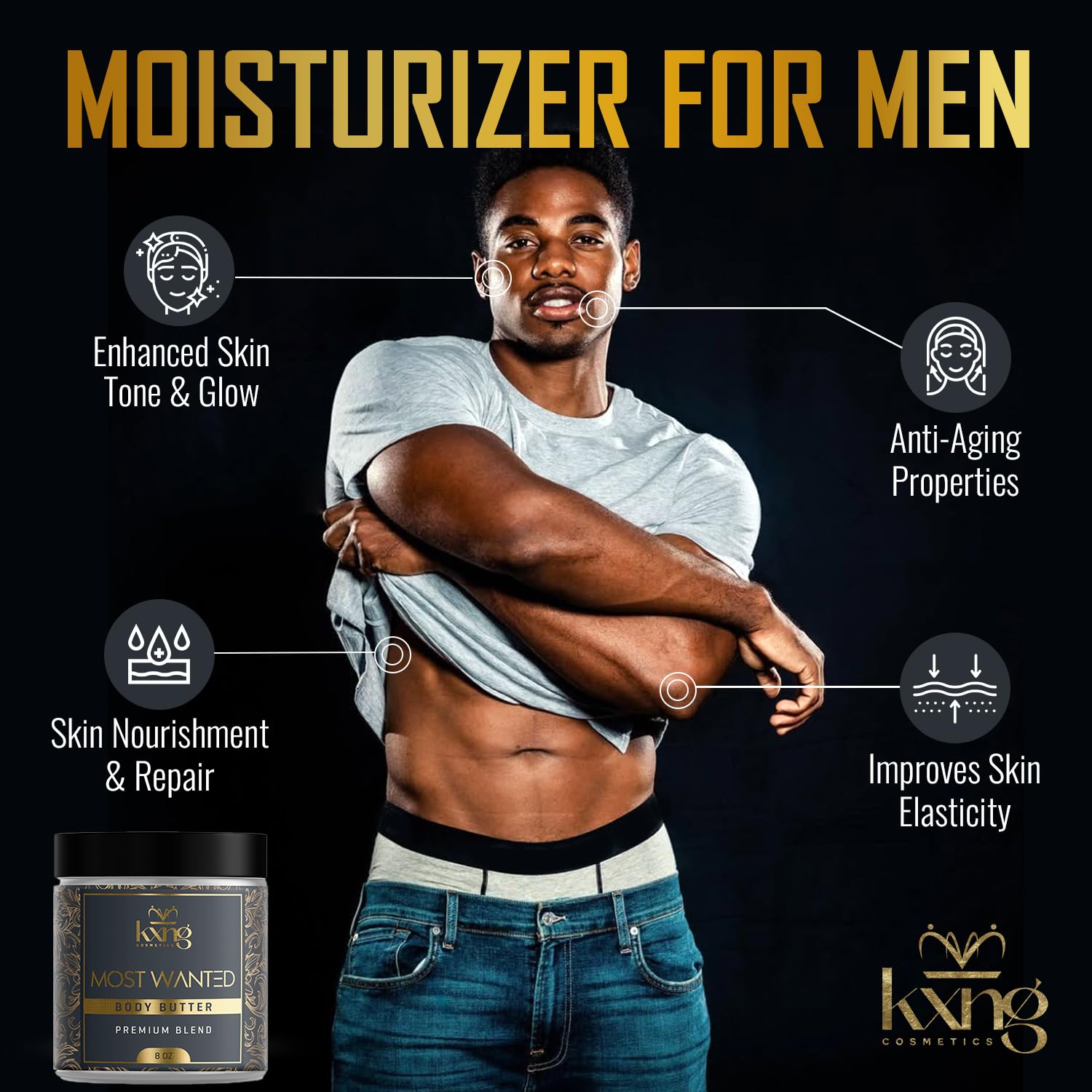 KXNG Cosmetics, Body Butter, Organic Skin Care for Men and Women, Body Moisturizer Lotions and Creams, Raw Shea Butter, Cocoa Butter, Mango, Coconut Oil, Hand, Foot, All Skin Types (Most Wanted XL)