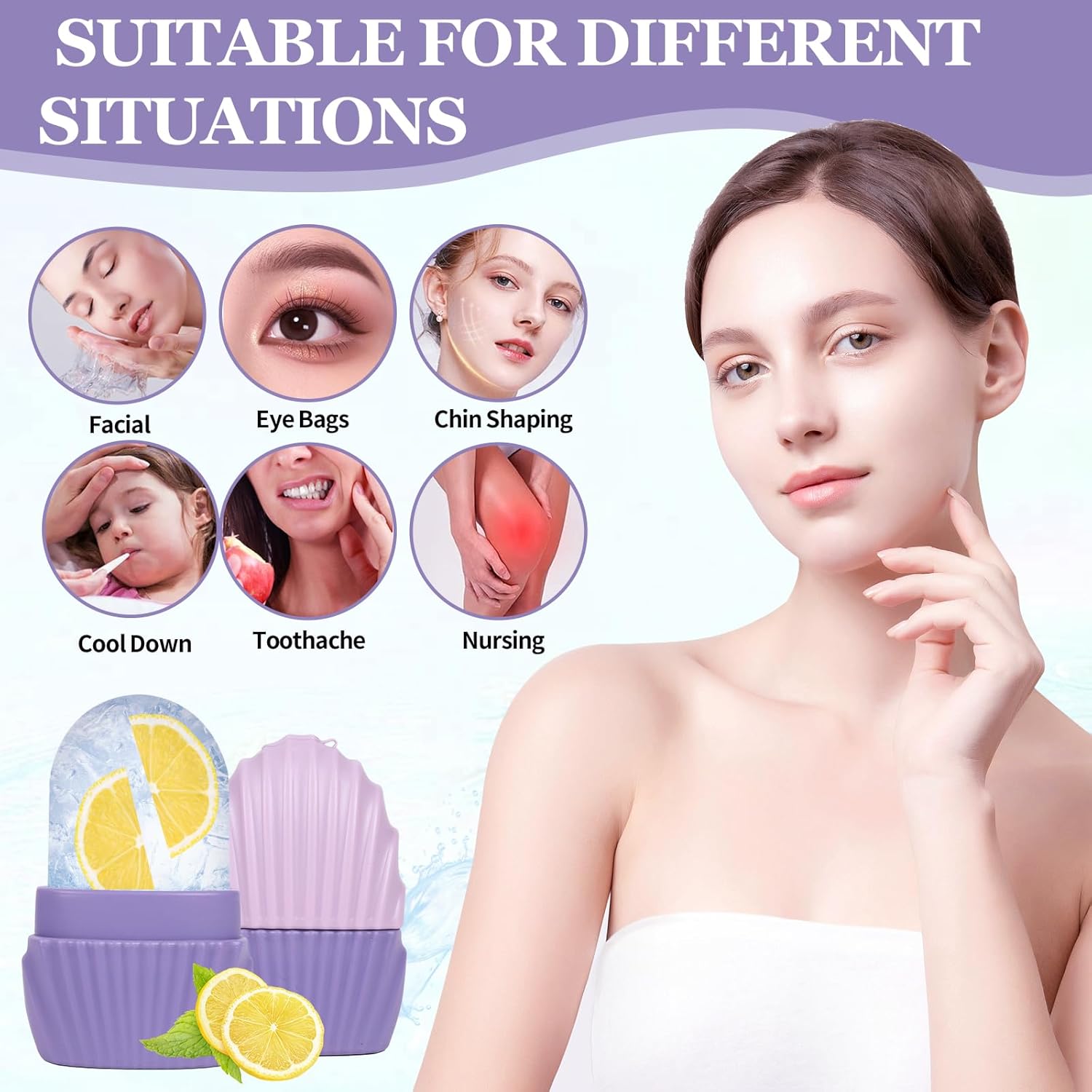 Ice Cube Roller for Face,Eyes and Neck,Reusable Silicone Ice Mold Mermaid Shell Shape for Shrink Pores Anti Wrinkle and Skin Beauty Care,Reduce Migraine Pain,Gua Sha Face Massage Tools (Purple)
