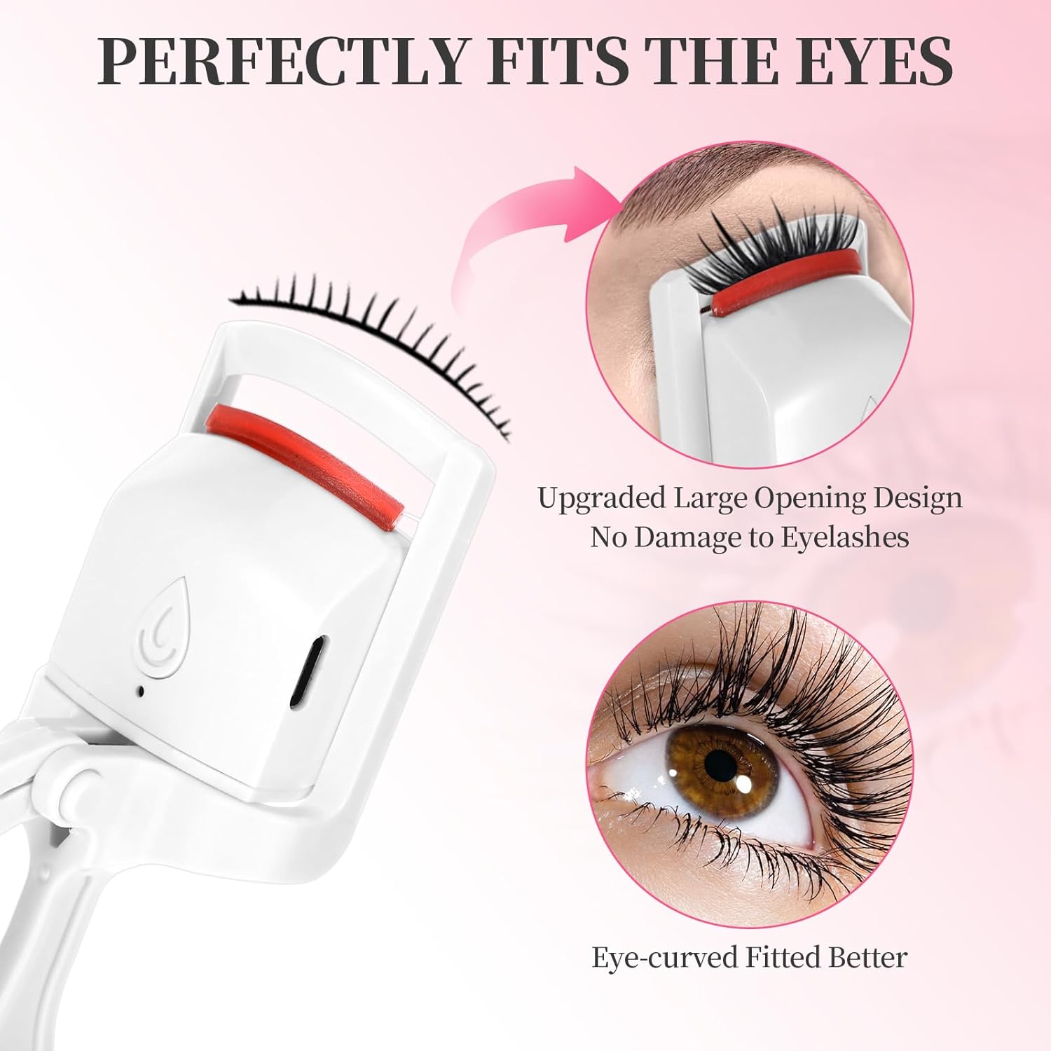 - Long-Lasting Hold, All-Day Bloom - The heated lash curler's heat-setting technology maintains a curl for up to 24 hours, while its even heating ensures a perfect curve from root to tip. The heated eyelash curler for women's long-lasting effect ensures vibrant eyes all day long, eliminating the worry of droopy lashes