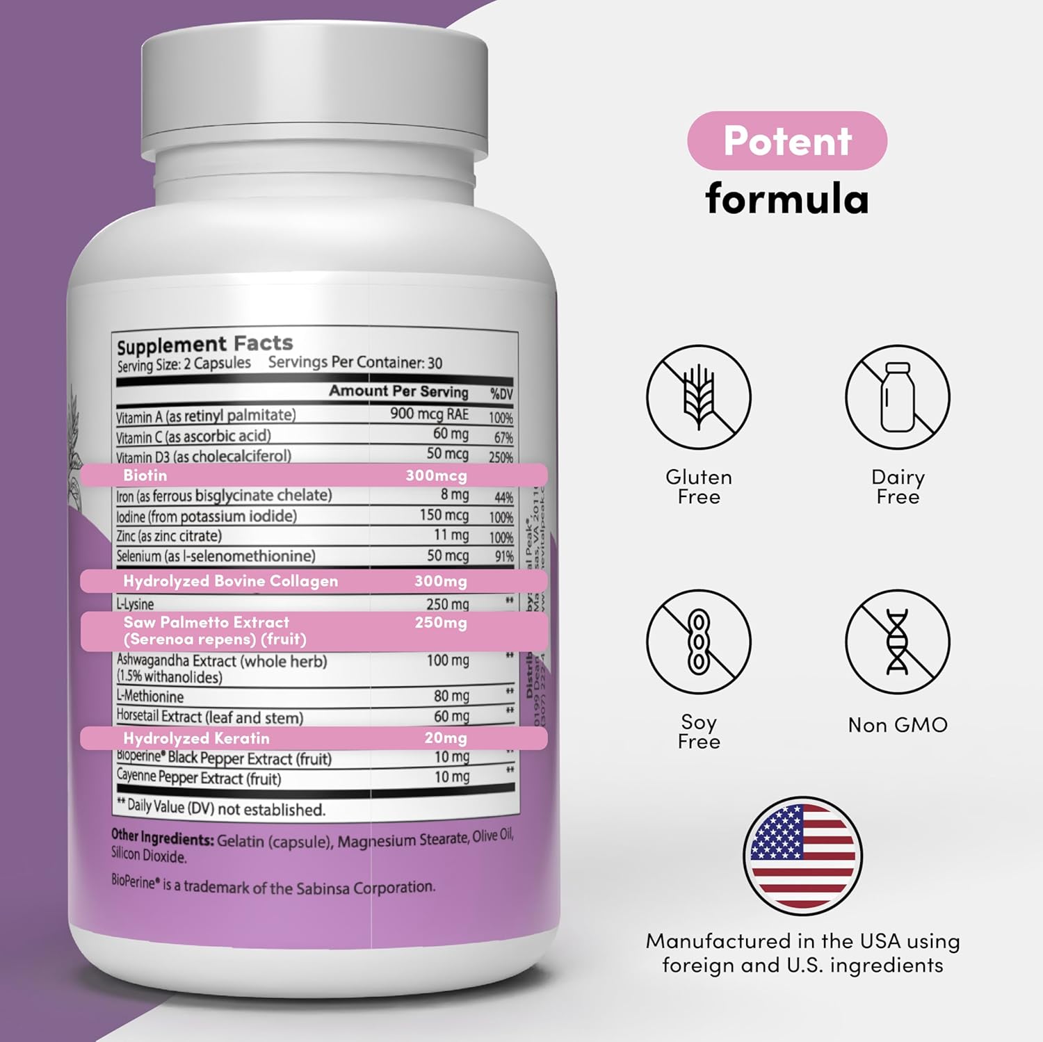 - MADE IN USA: Hair Peak is manufactured in the USA using foreign and US ingredients. This supplement is non-GMO, gluten-free and dairy-free.*