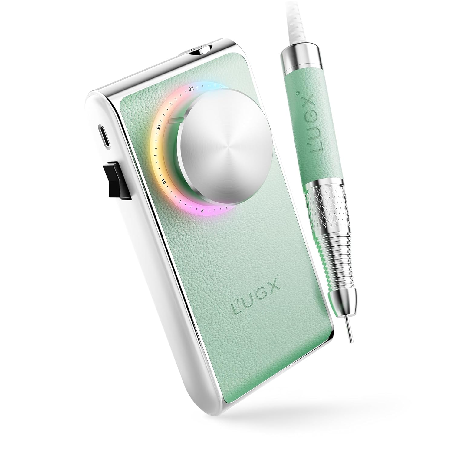 L'UGX Professional Nail Drill 30000RPM, Cordless Rechargeable Electric Nail File for Acrylic Nails Gel Polishing, Efile Nail Kit for Manicure Pedicure, Low Noise Low Vibration, 7Pcs Drill Bits, Green