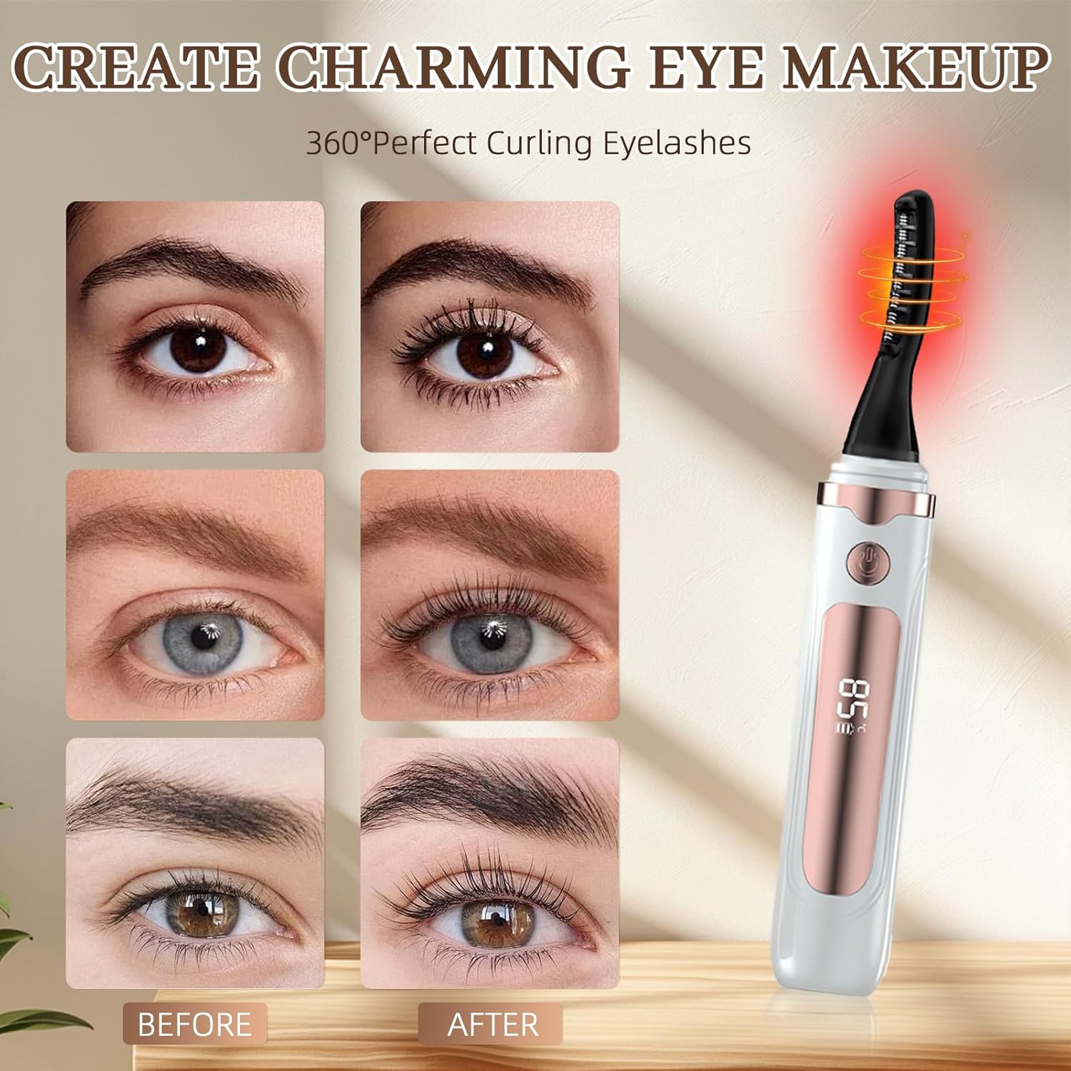 - 【3S FAST HEATING & LONG-LASTING CURL】The Heated Eyelash Curlers Can Fast Heat Up Within 10s And The Curved Curling Head Quickly Creates A Perfect, Natural Curl For Your Eyes. Lasts Up To 24 Hours. This Eyelash Curler Comes With A Professionally Designed Curved Brush Head. When Used With Mascara, It Helps You Curl Your Lashes Quickly And Easily For A Natural And Long-Lasting Eye Makeup Effect That Enhances Your Eyes' Depth And Natural Appeal.