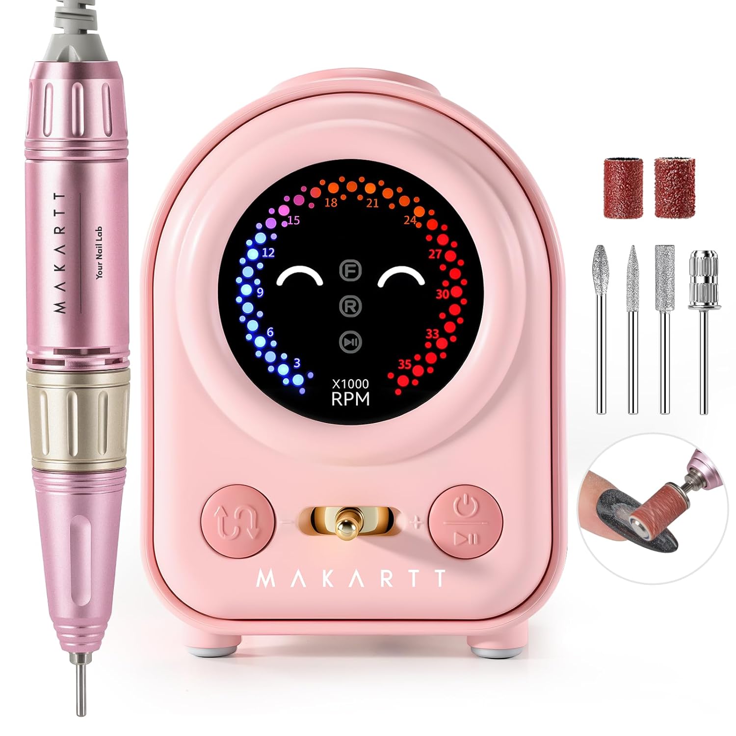 Makartt Electric Nail Drill - Professional 35000RPM E-File Machine Portable Nail Drill Kit with Drill Bits,Cute Compact Efile Salon Use Low Noise Manicure Pedicure for Acrylic Gel Nails Pink