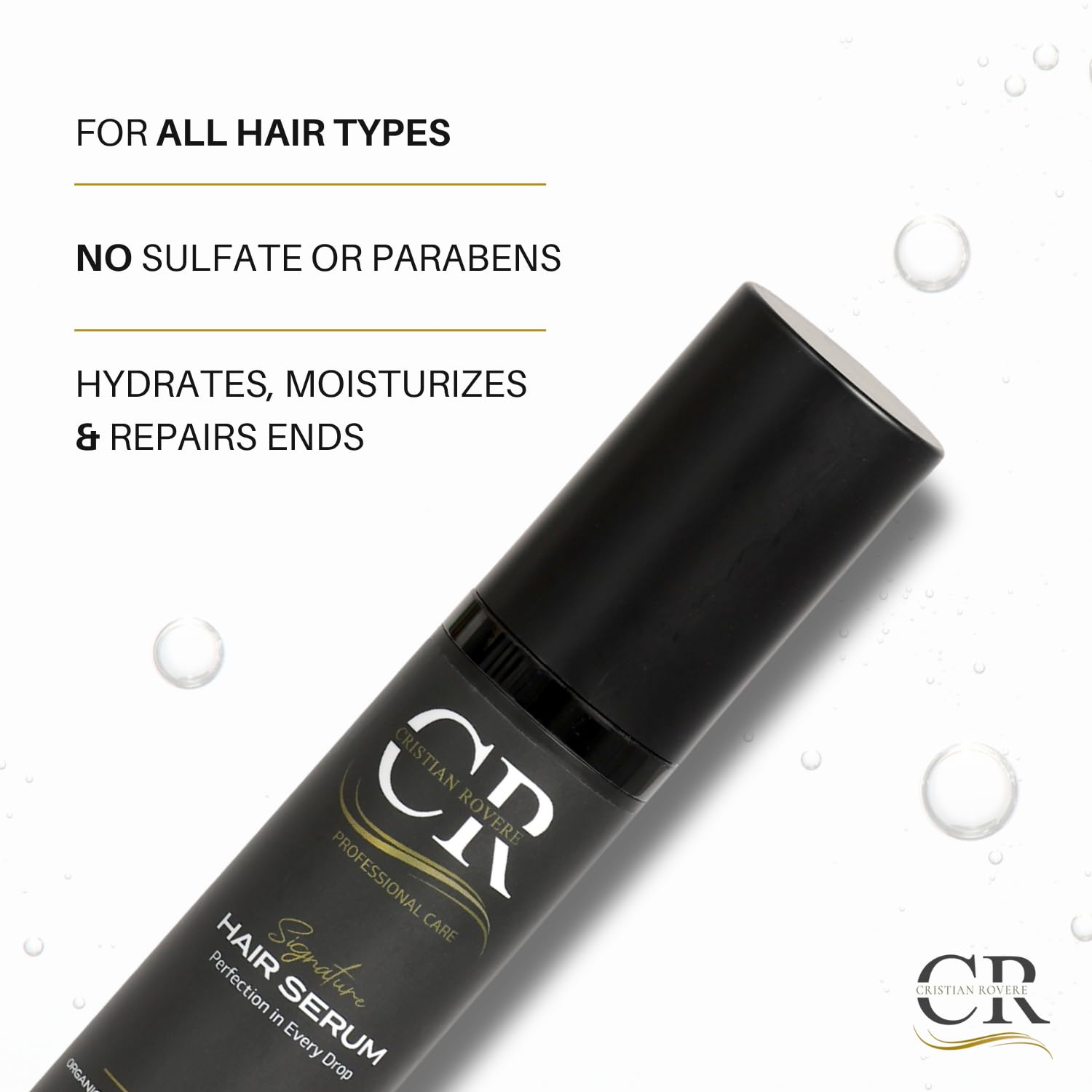 Cristian Rovere - Signature Hair Serum - Organic Argan Oil & Acai Extract - Frizz Control & Shine Serum - Sulfate Free & Paraben Free - Lightweight Hair Oil for Smoothness - 1.7 Fl Oz