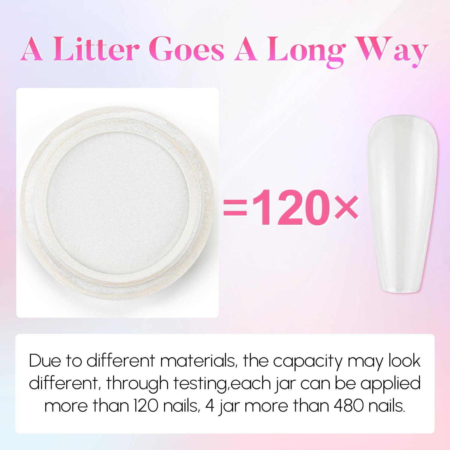 - Package Included: 4 Jars Nail Powder with 4 pcs eyeshadow sticks. You can get pearl iridescent effect when you apply over the light color base gel. And, get aurora chrome effect when you apply over black/dark base gel.