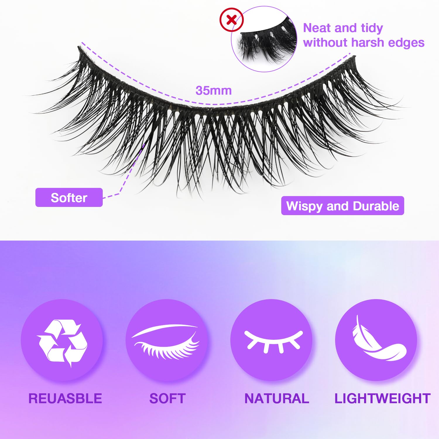 - 7 Pairs Natural-Looking Lashes Kit: Endless Beauty! Beginner-friendly false eyelashes with bond + seal + tweezer included! Achieve natural-looking wispy lashes in minutes – easy strip lashes with flexible thin band for seamless blending.