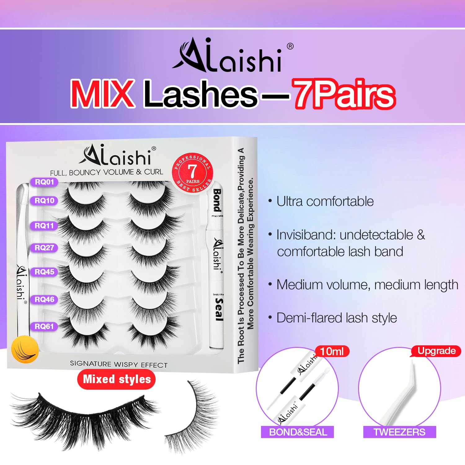 - 7 Pairs Natural-Looking Lashes Kit: Endless Beauty! Beginner-friendly false eyelashes with bond + seal + tweezer included! Achieve natural-looking wispy lashes in minutes – easy strip lashes with flexible thin band for seamless blending.