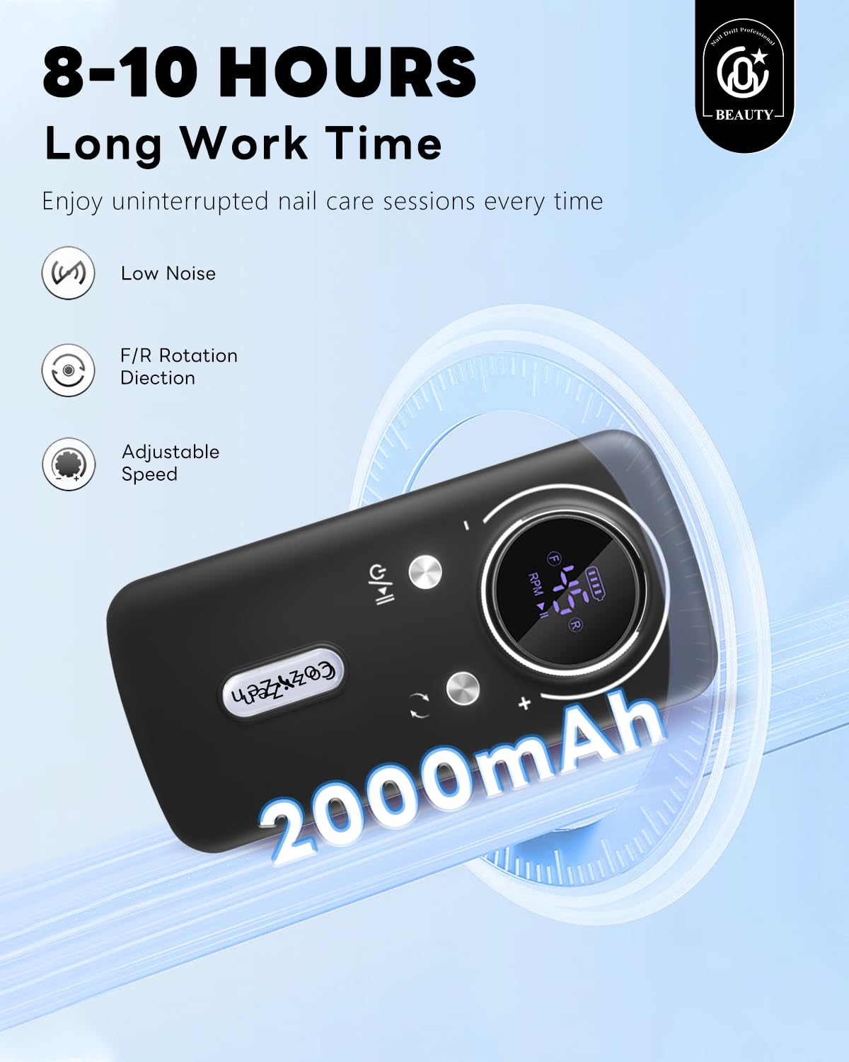 - 【8-10 Hours Long Work Time】Enjoy uninterrupted nail care sessions with our rechargeable nail drill, offering an impressive 8-10 hours of continuous operation on a single charge. Ideal for busy salon environments or long at-home nail treatments, ensuring consistent, reliable performance every time.