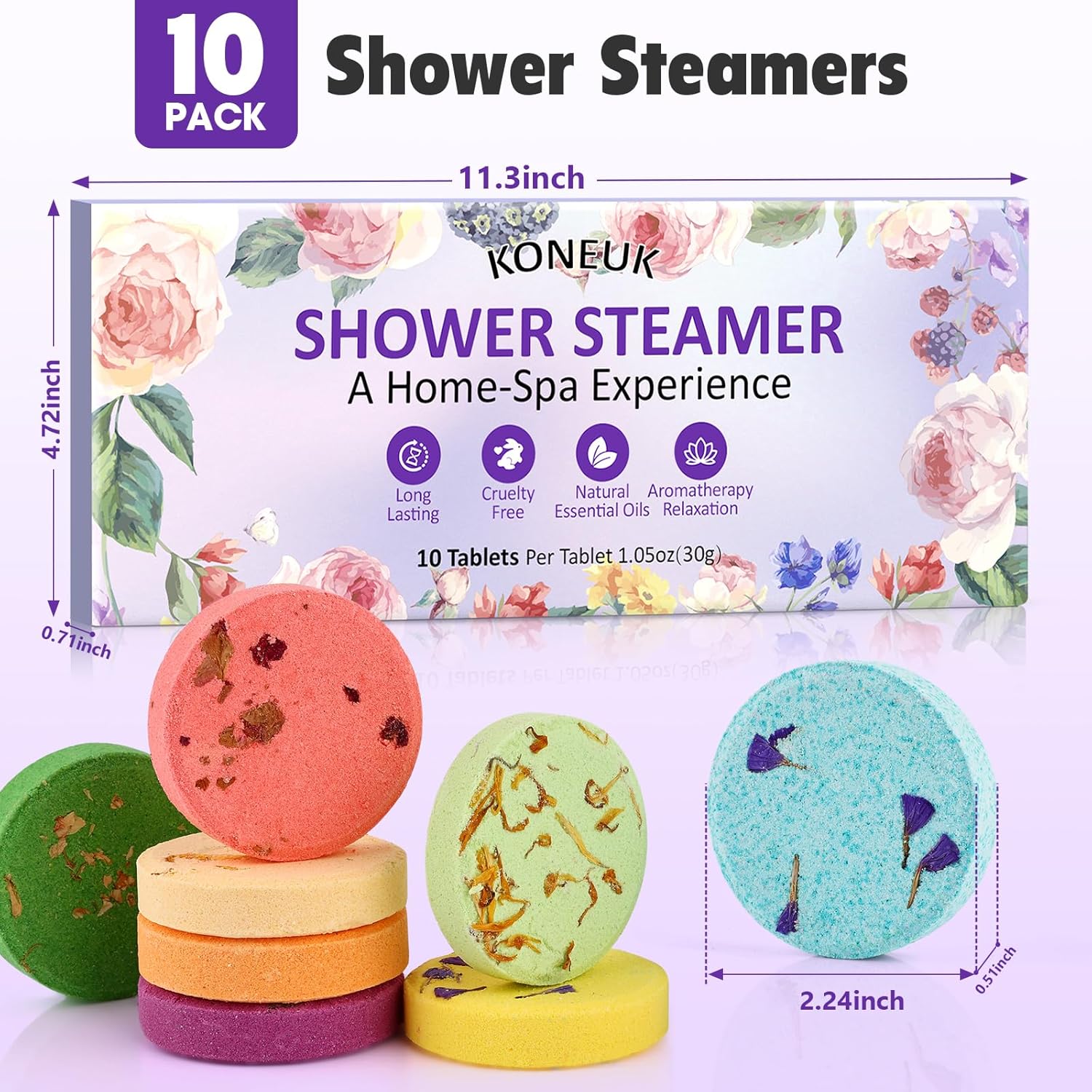 - 【Excellent Self-Care Spa】After a long day at work,when you get home,using a shower steamer during your bath can relieve stress,relax your mind and body,and add joy and enjoyment to your shower.Let the pleasant fragrance fill the shower room and enjoy a luxurious home spa