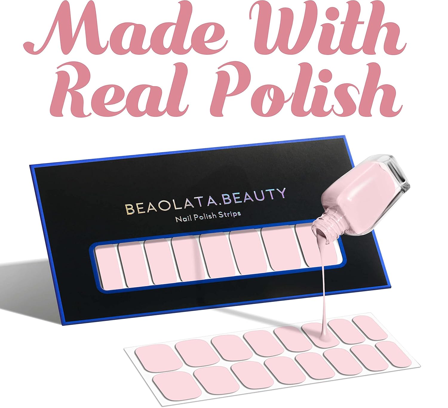 Nail Polish Strips, 32PCS Salon Quality Wraps, Long Lasting Gel Nail Stickers for Women Easy Apply& Remove (Sweet Pink)
