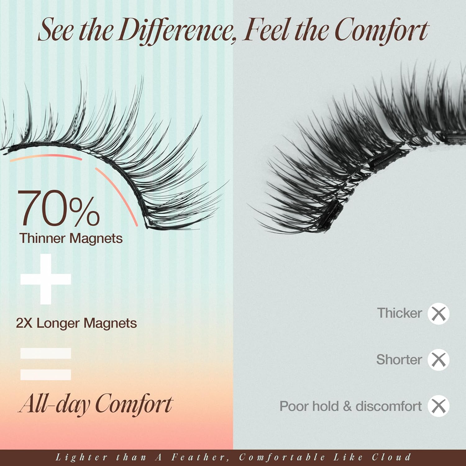- [Comfortable & Sustainable] Adopting 0.17 mm ultrathin magnets, the natural magnetic eyelashes are super comfortable to wear and bring a barely there feel. Besides, they are reusable over 100 times with proper care