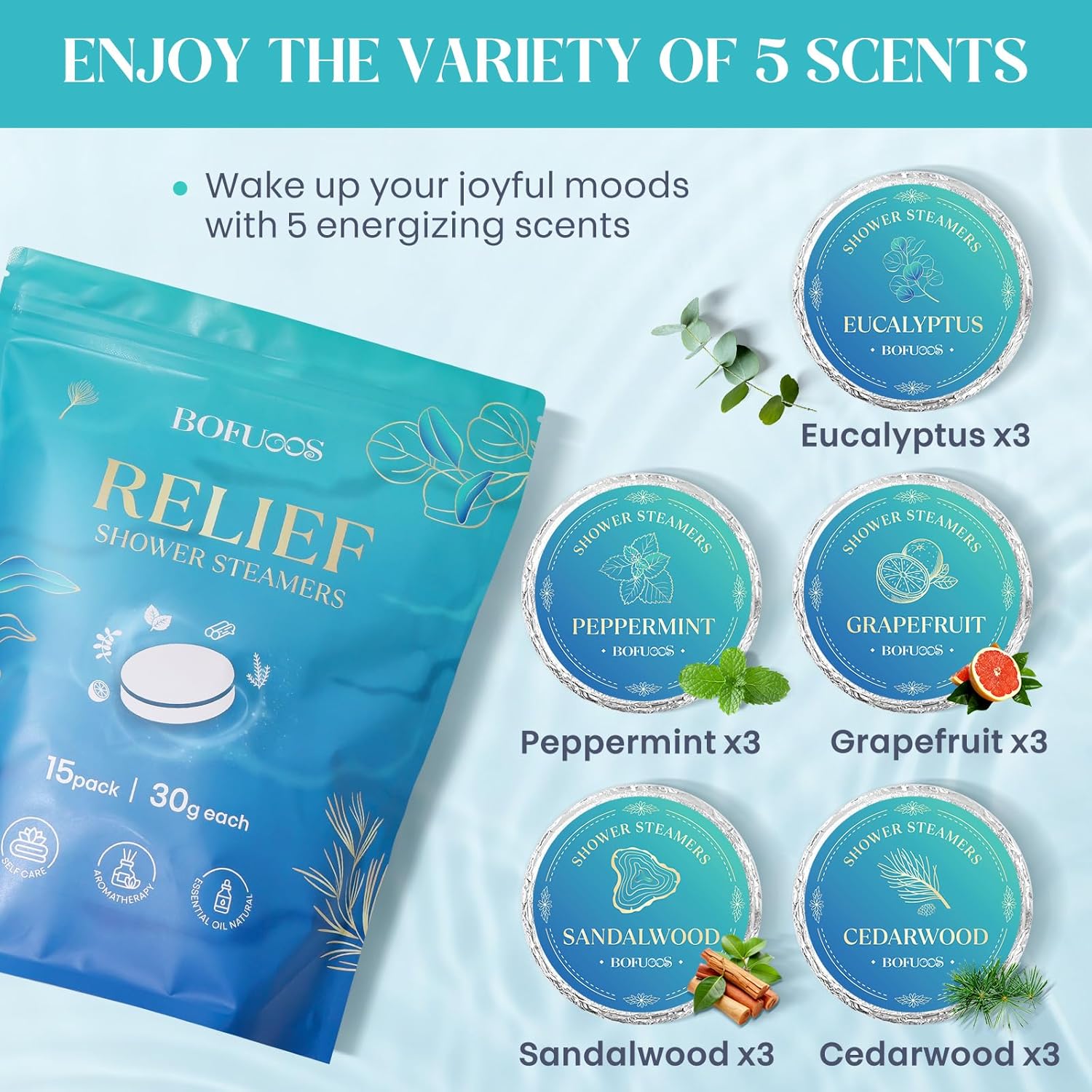 • Aromatherapy Experience: These shower steamers provide a relaxing aromatherapy experience with 5 unique scents— Cedarwood, Sandalwood, Eucalyptus, Peppermint, and Grapefruit. Transform your shower into a spa-like retreat.