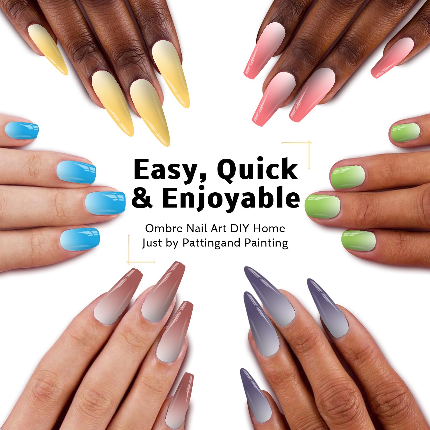 - 【HAVE FUN:】Karroy ombre nail gel will bring you great fun by self-coloring mixing, sponge-patting painting, brushes drawing & dotting, ect. It's easy, colorful, and wonderful!