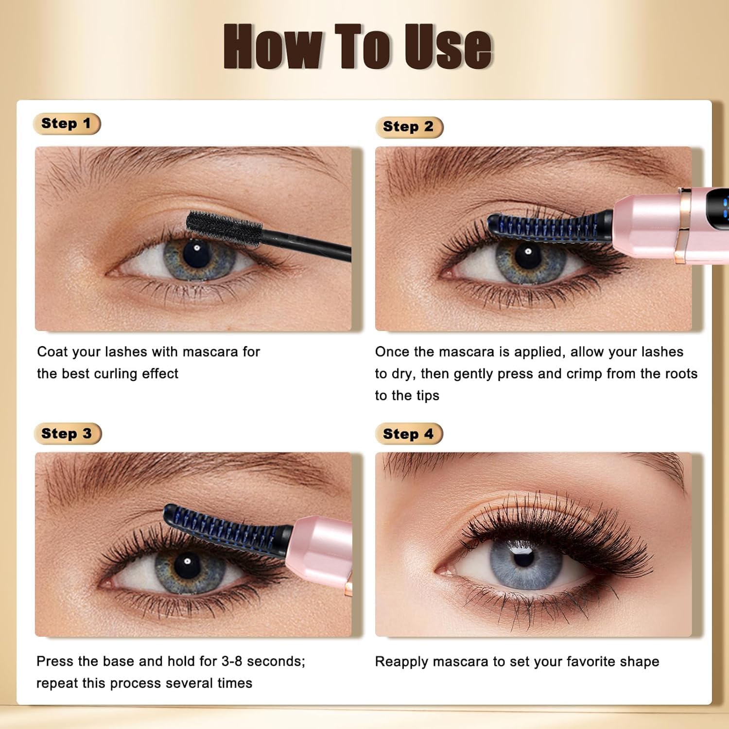 - 【Safe To Use】 Our new heated eyelash curler with curved curl design makes it more flattering to your eye shape, whether it's lengthening your lashes or creating a glamorous curl. It ensures that your eyelids and lashes will not be burned during use, allowing you to pursue your beauty without worry.