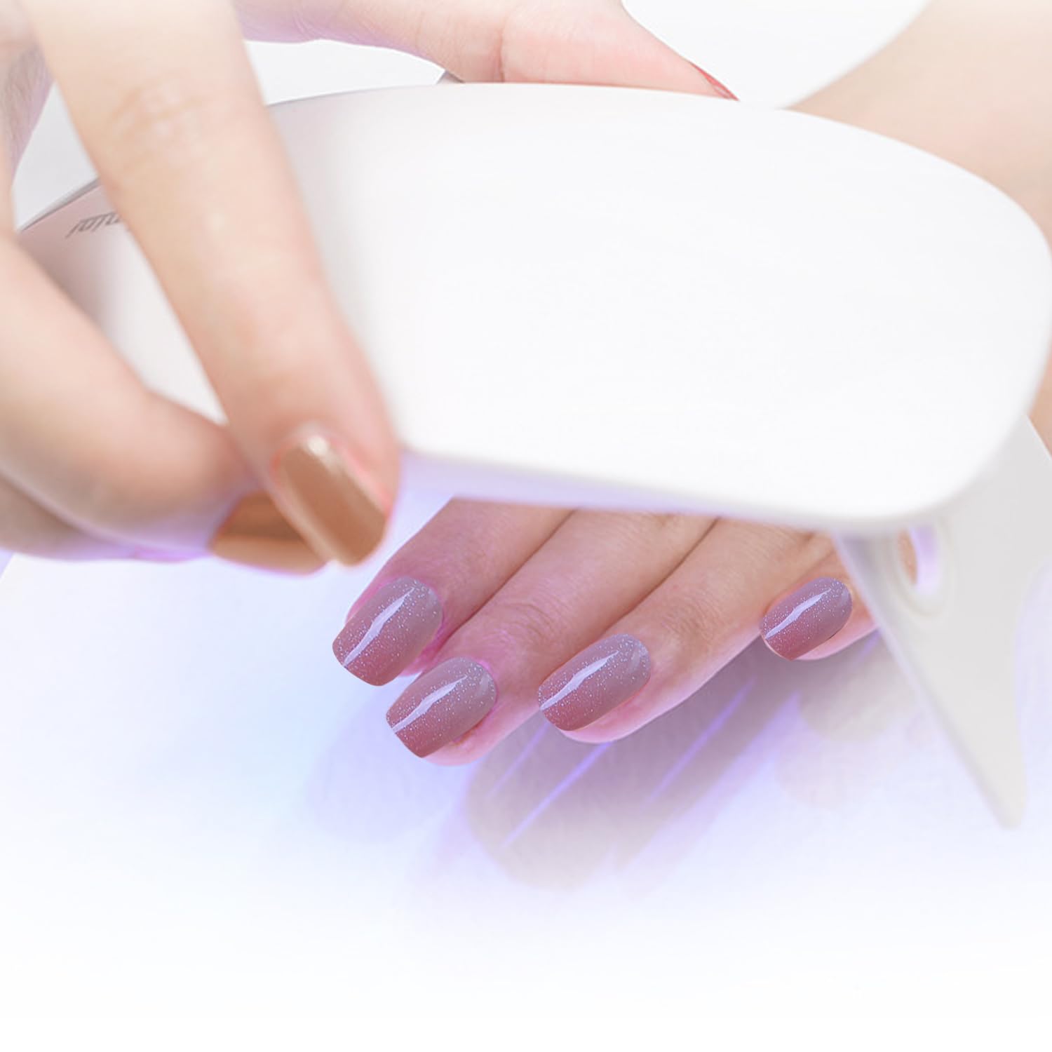 - SALON-QUALITY ELEGANCE - Crafted from superior gel, our semi-cured nail strips are pre-cured to 60%, offering a flexible yet durable texture. After a swift cure (120 seconds) beneath a UV or LED lamp, indulge in salon-like nails lasting approximately 2 weeks. Please note: These strips are not intended for nail extensions.