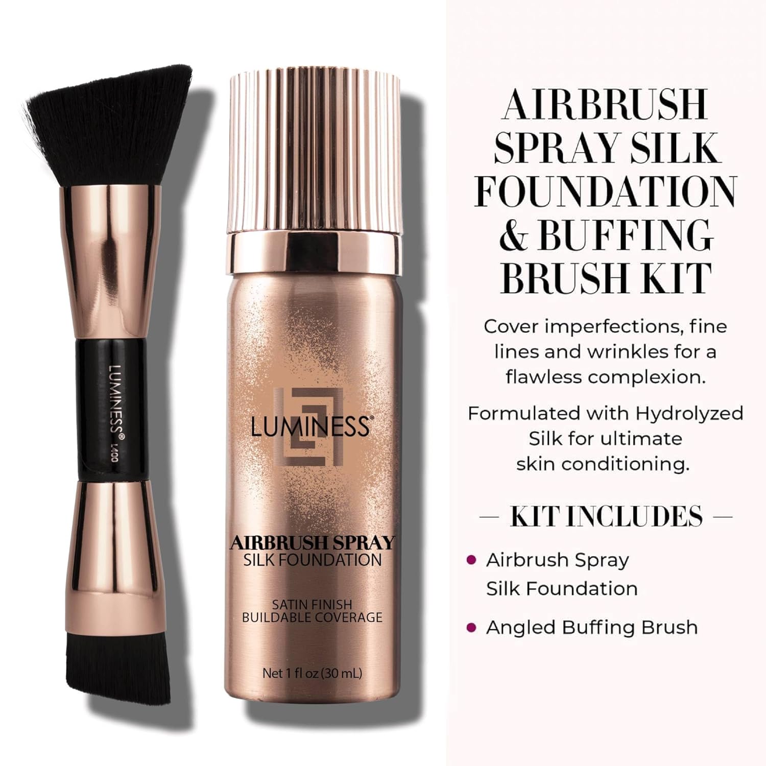 - Full Coverage Foundation Makeup: Achieve smooth, radiant skin with our Luminess Silk Airbrush Spray Foundation. This airbrush kit provides buildable coverage with a weightless feel, perfect for mature skin. Enjoy a flawless finish that looks natural and never cakey.