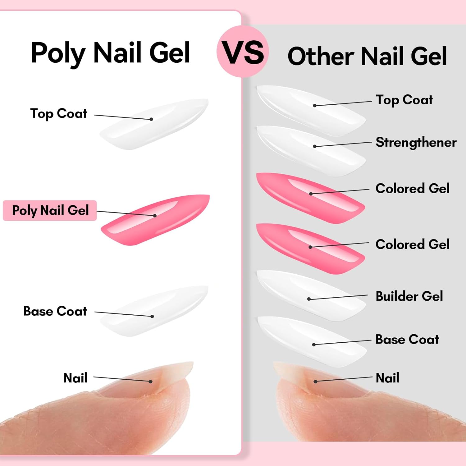 - Strengthen Your Nails-To get strong nails using this gel nail extension, smooth finish creates a protective base, preventing breakage and promoting better nail growth. Also with 13 toxin-free and gentle on skin ingredients, protect your nails better