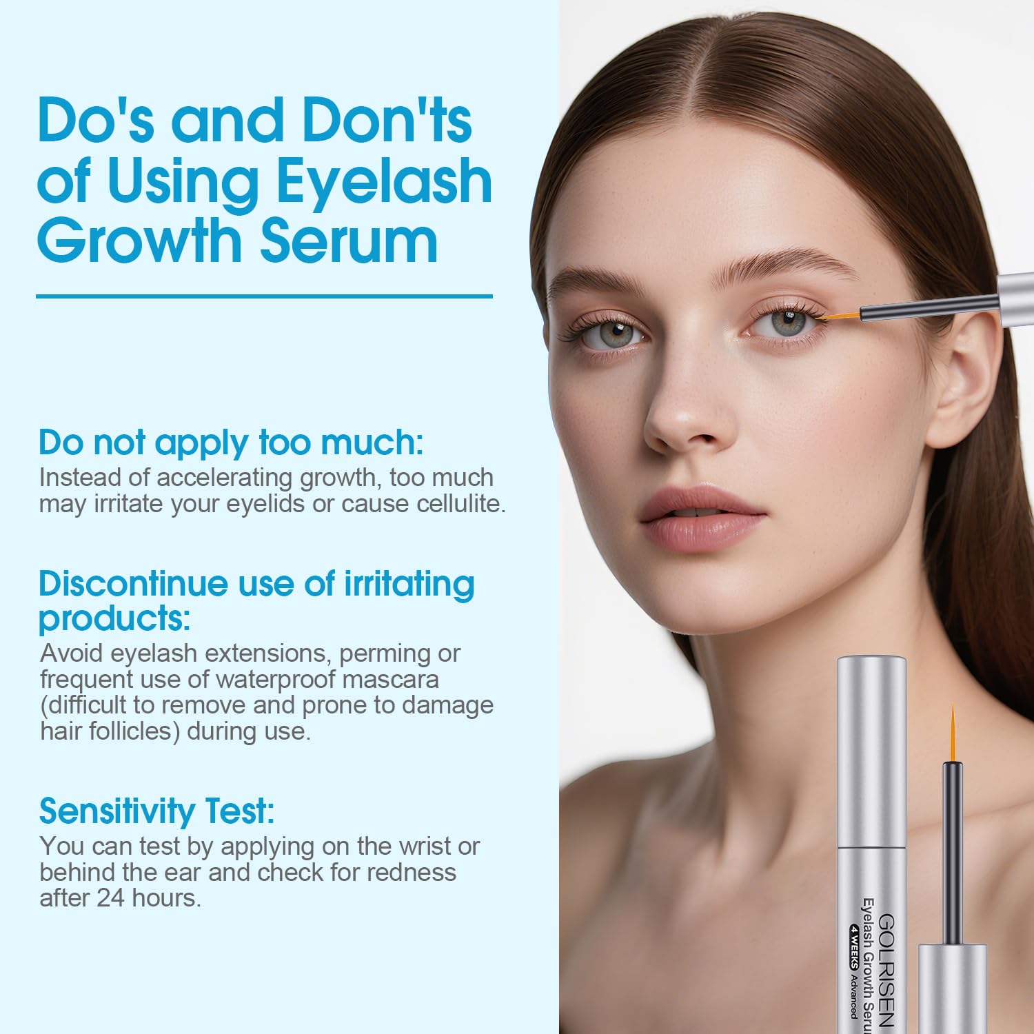 - How to use: The precision brush head easily coats the base of the lashes, applying a thin line along the base of the upper lashes before bedtime (similar to an eyeliner). Allow to dry for 60 seconds. Avoid rubbing eyes
