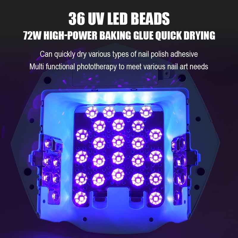 - Smart Sensor & Timer :Our LED UV Gel Lamp for Nails, conveniently activates when hands are placed inside and automatically turns off upon removal. Choose your ideal curing time with 4 preset timers (10s/30s/60s/120s) and adjust speed with 3-level PST function, all clearly managed on the large LCD display.