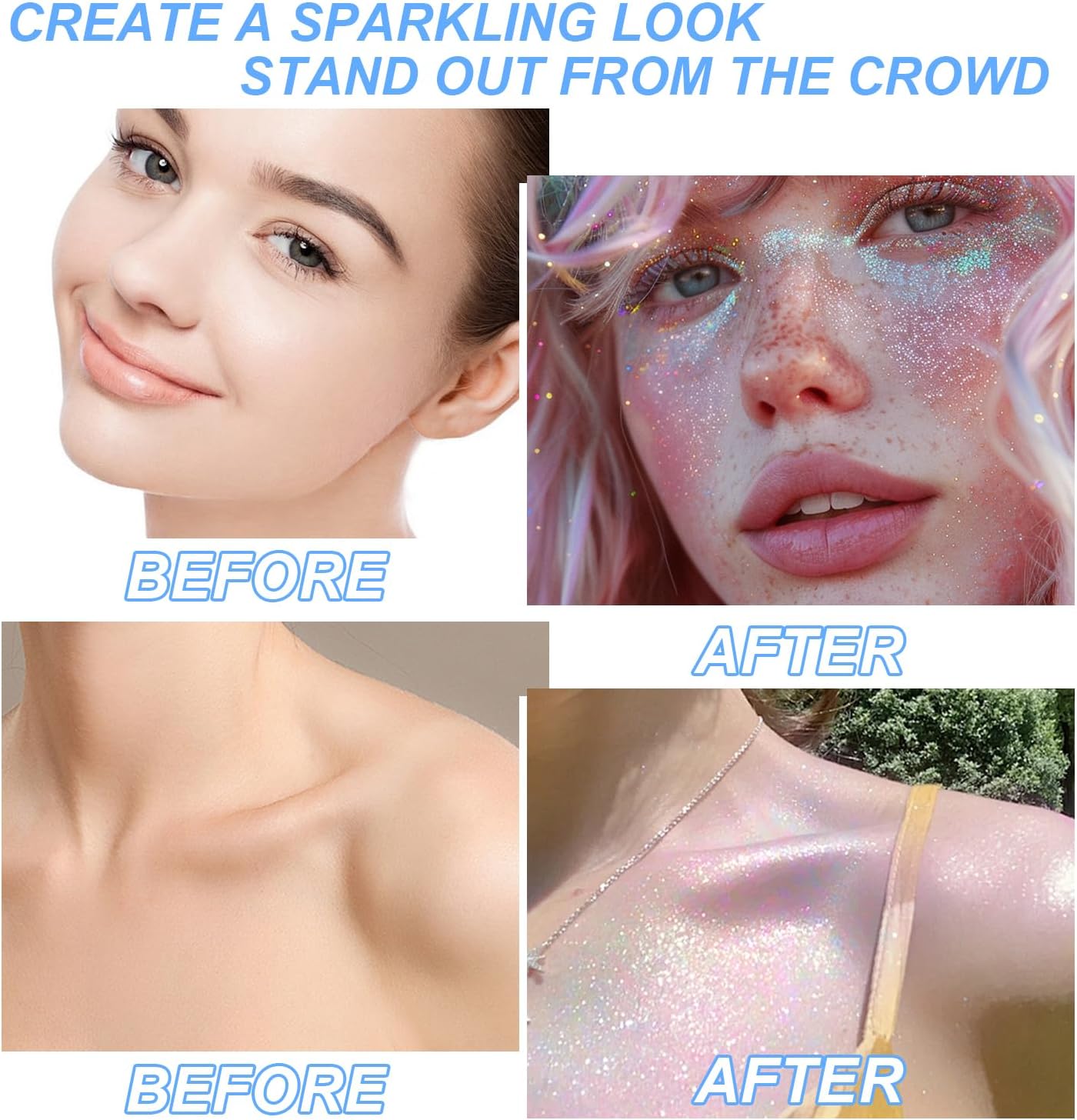 - Versatile Sparkle: Our body glitter spray for women is your go-to for adding shine anywhere—hair, face, neck, legs, or even your outfit! Perfect for Mardi Gras, St. Patrick's Day, 4 of July Independence Day, Coachella, Halloween, Christmas, Valentine's Day, New Year,birthday celebrations, masquerade balls, nightclubs, festive events, stage performances, weddings, dances, Halloween, Christmas, and more. Wherever the occasion, let your sparkle steal the show!