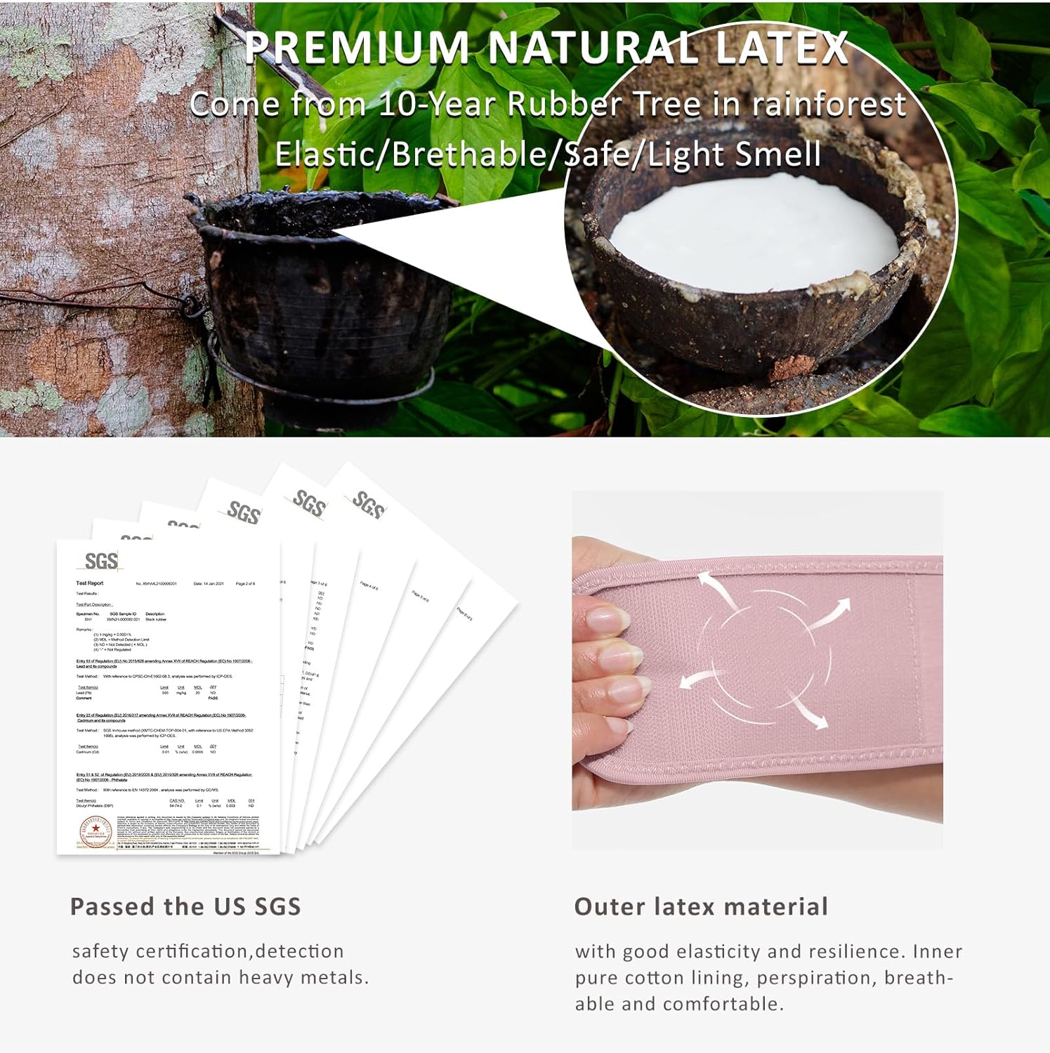 - Fabric type : Inner layer 96% Cotton+4% Spandex; Out layer natural latex