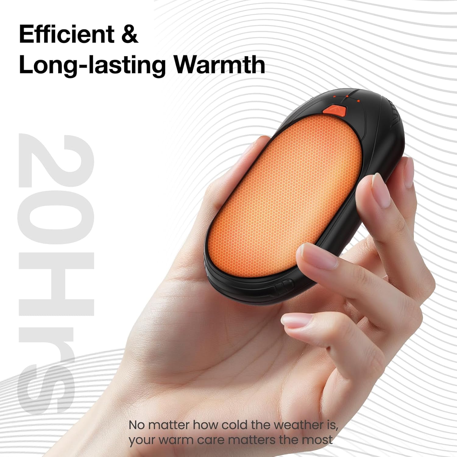 - Extended Battery Life: Powered by a high-capacity rechargeable battery, these Rechargeable hand warmers deliver 8.5 to 20 hours of continuous heat on a single charge. A convenient 3-level indicator light shows remaining battery and heat level at a glance. Includes a fast-charging USB-C cable to keep you powered throughout your day.