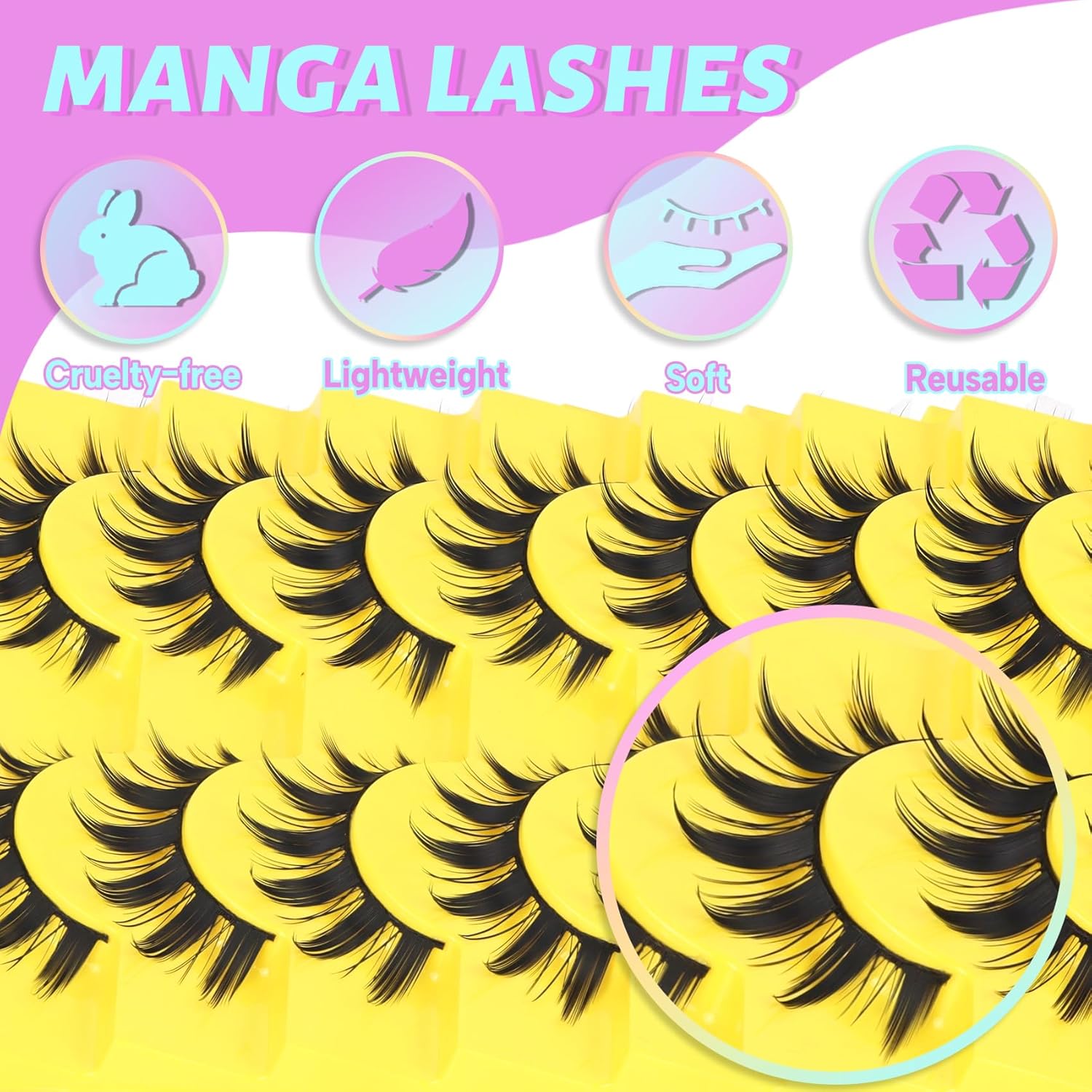 - Soft & Easy to Apply: These manga lashes are soft and lightweight. And with the flexible thin cotton band, even if you are a beginner can easy to apply. Also, you can wear it to any occasions, such as daily-wearing, party, working and so on.