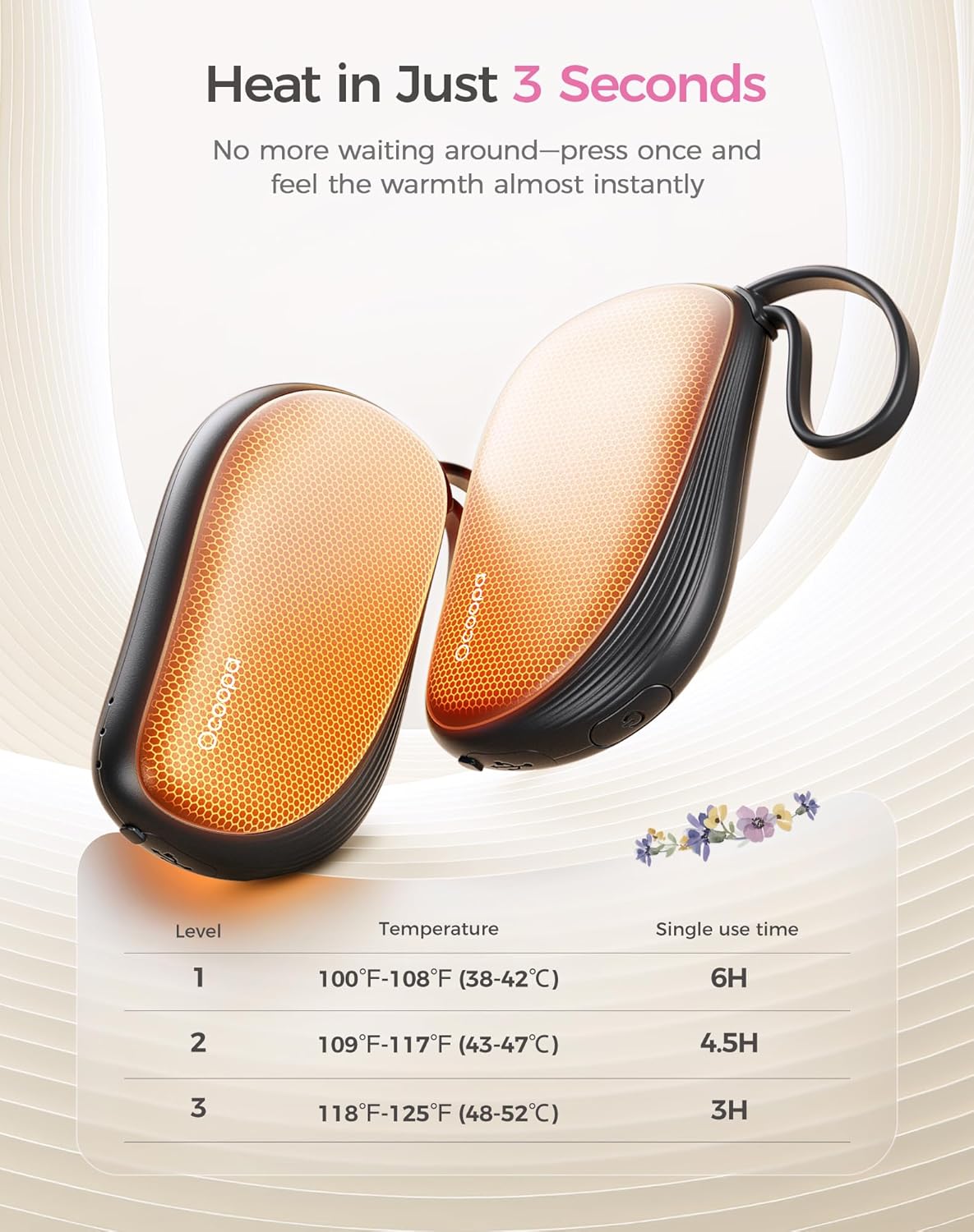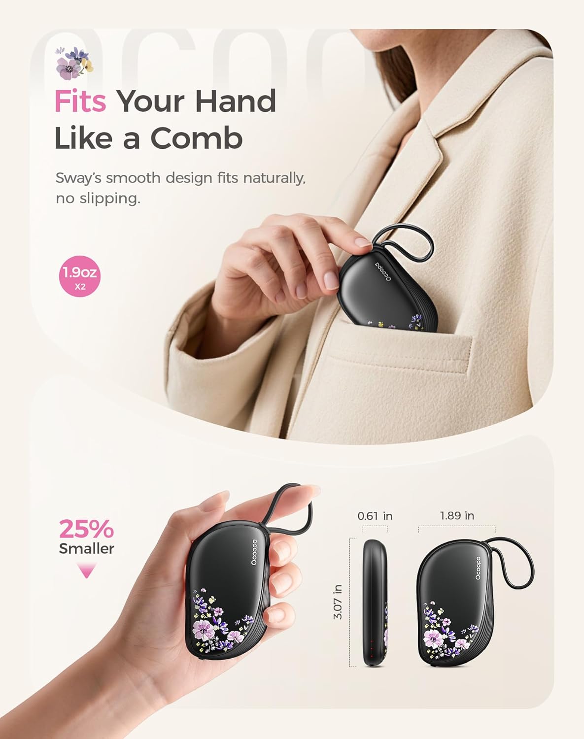 - Inspired by the Comb, Built for Warmth: Inspired by the graceful curves of a royal comb, the UT5 Sway hand warmers blend timeless design with modern heating technology. Heats up in just 3 seconds and delivers steady, single-sided warmth for up to 6 hours with three heat levels. No more bulky or disposable warmers—just compact comfort that goes where you go.