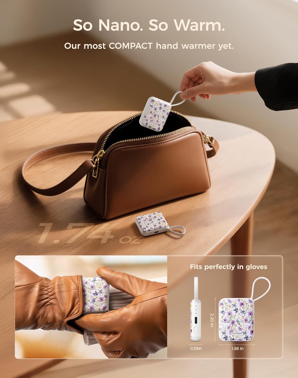 - Ultra-Nano Size – Designed for Her Hands: This ultra-slim rechargeable hand warmer smaller than your palm, lighter than a lipstick. UT5 Nano fits perfectly in gloves, pockets—even wallets. Tailored for women who love warmth without the bulk.