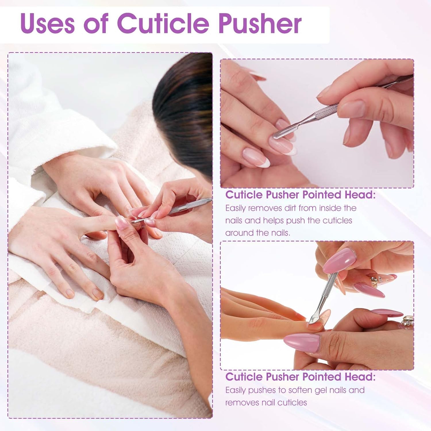 - 【Portable and Fashionable】manicure sticks are light and portable. Our cuticle scraper is an excellent choice for professional manicure, salon, and home DIY nail care. Whether it is for a professional manicurist or home use, this toenail cleaner tool can bring convenience to your manicure process.