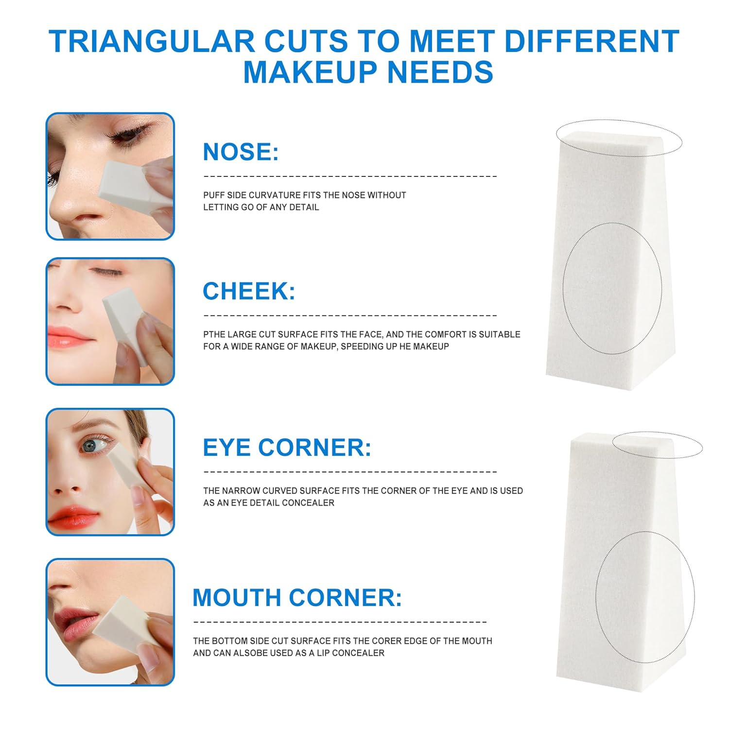 - CONVENIENT SIZE: Triangle wedge design fits comfortably in hand for easy manipulation during makeup application or craft projects