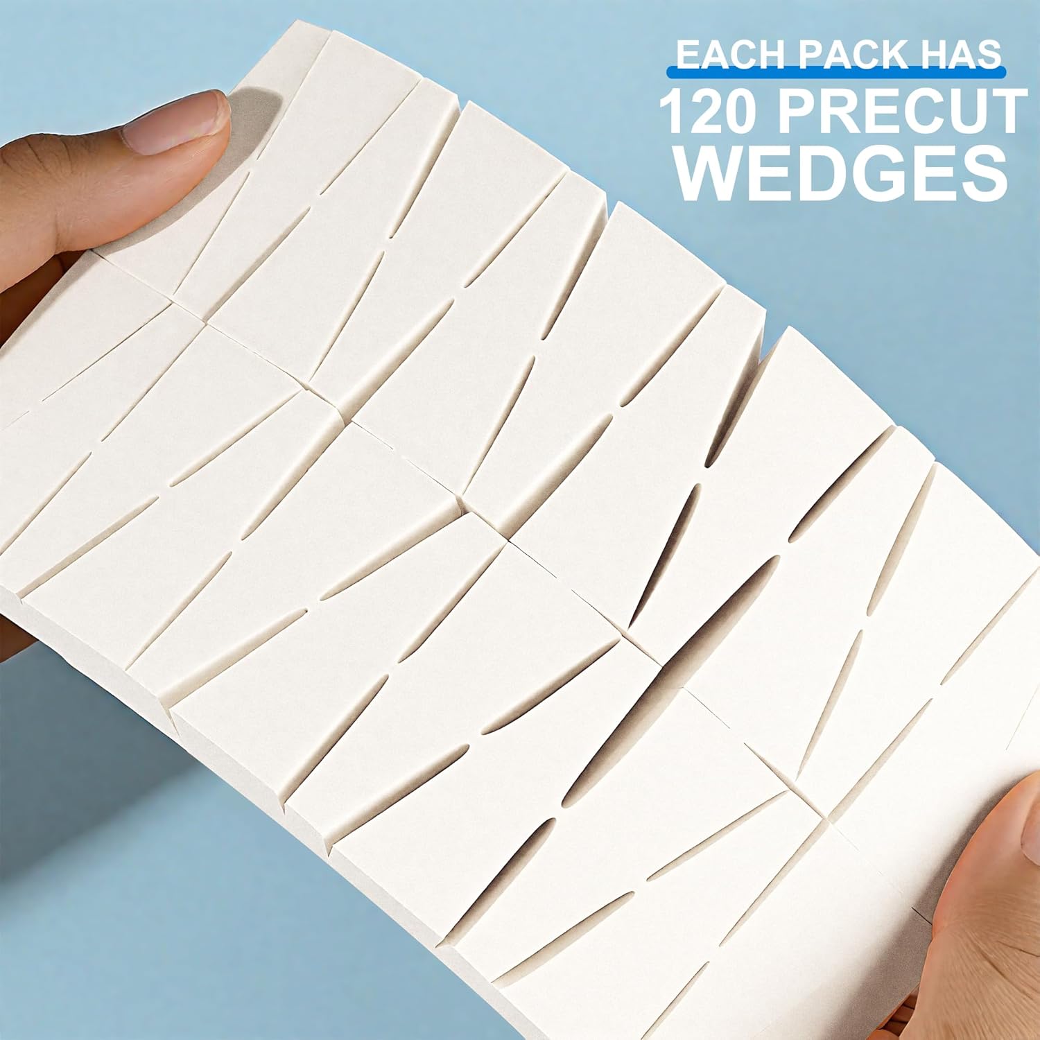 - QUANTITY & VALUE: Bulk pack of 120 disposable triangle-shaped cosmetic wedge sponges for professional or personal use