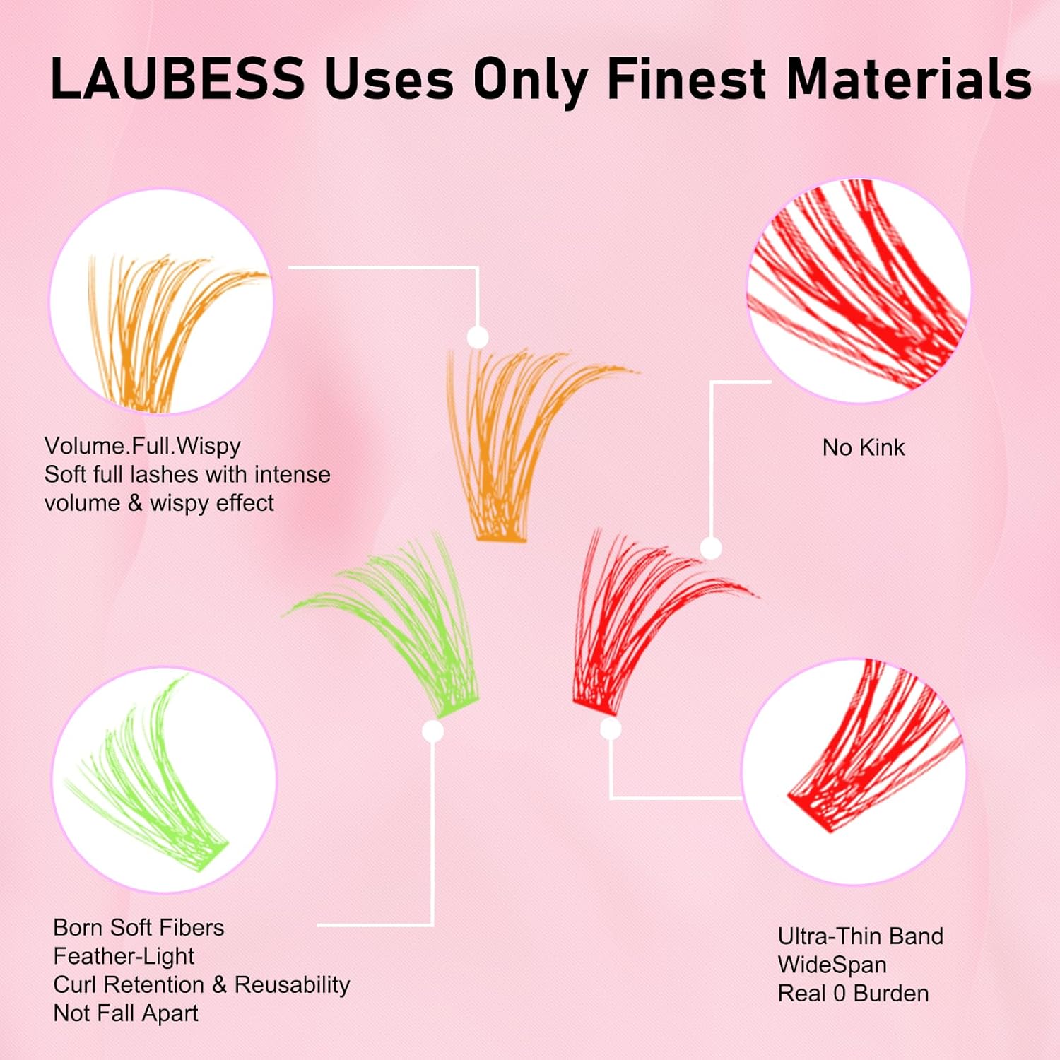 - Zero Weight: LAUBESS color lash clusters is made of ultra-light PBT material, softer than ordinary cluster lashes, comfortable to wear without stress.