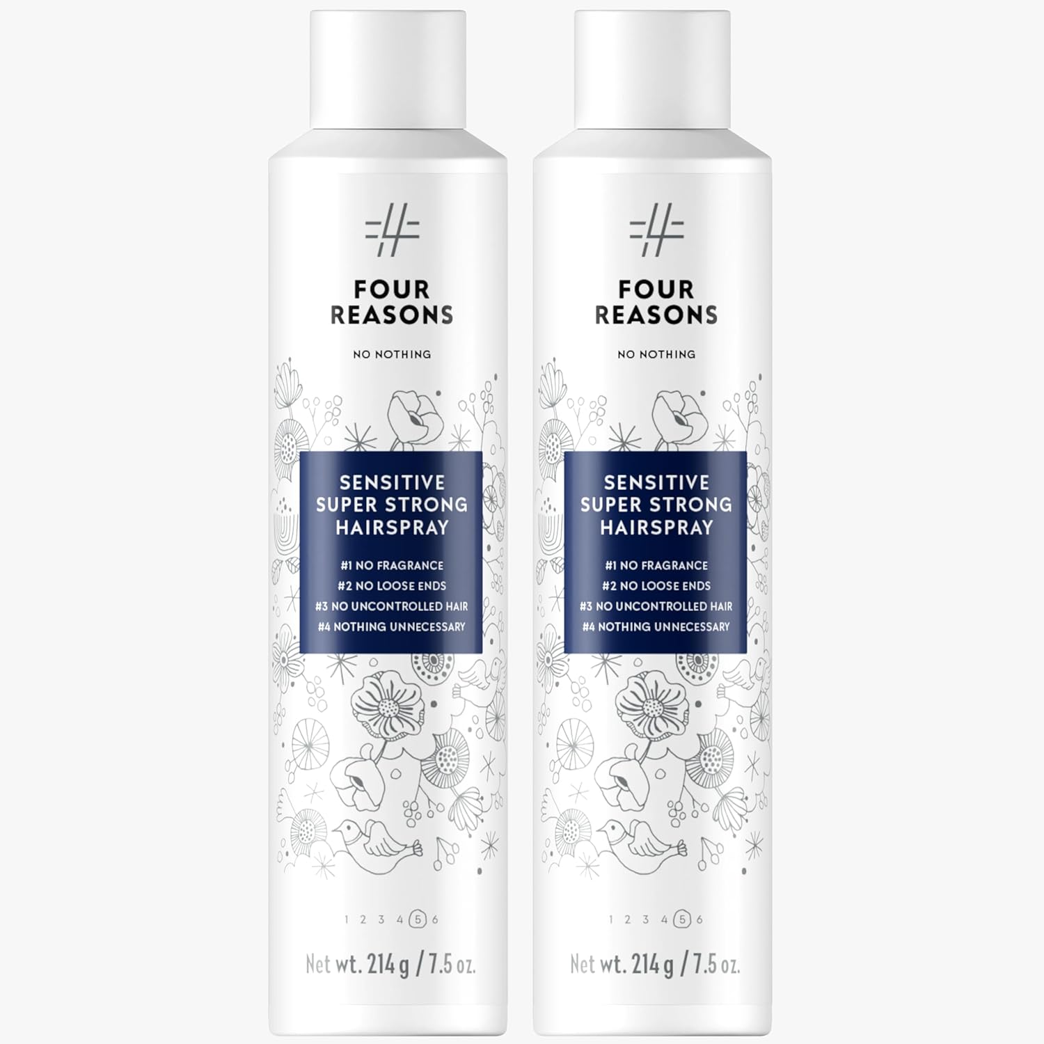 No Nothing Sensitive Extra Hold Hairspray, Unscented Finishing Spray for Styling, Wind & Humidity Protection, Reduces Frizz & Split Ends, Flexible Brushable Hold, Hypoallergenic - 2 Pack (7.5 oz Each)