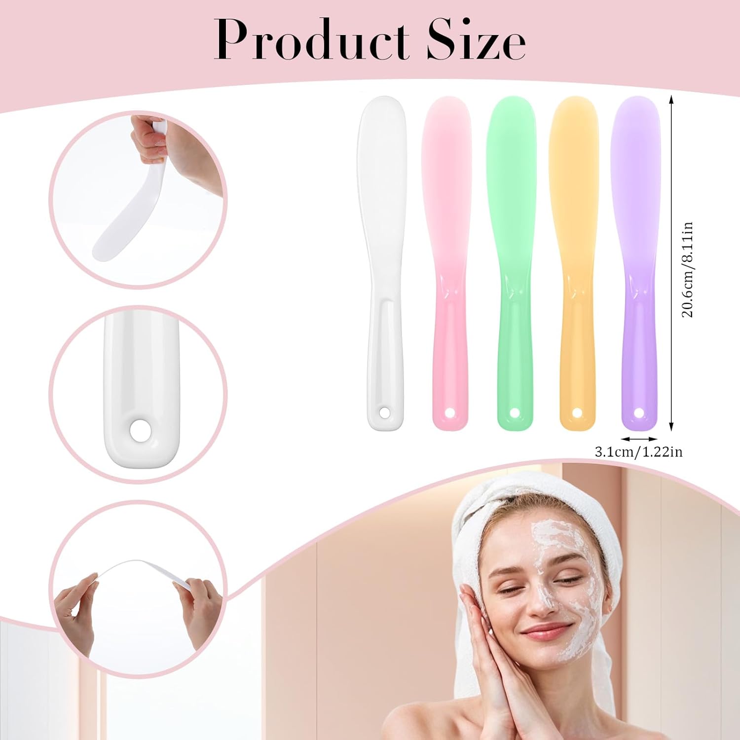 - 【Convenient for Travel & Sharing】With 5 colorful cosmetic spatulas, this set is easy to carry on trips and perfect for sharing. The lightweight design and hanging holes make these face mask spatulas a must-have for anyone prioritizing clean, efficient skincare application.
