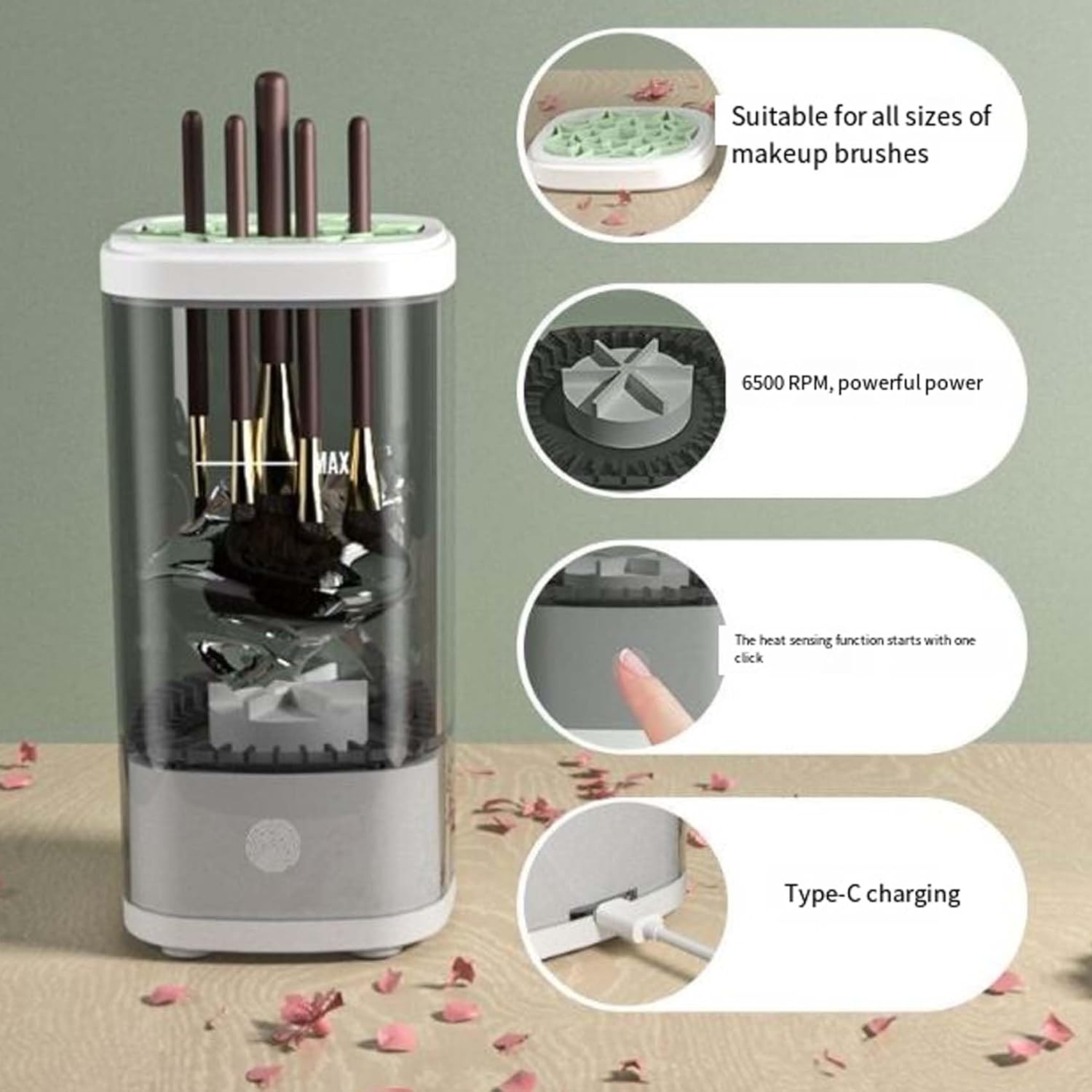 - 【Compact & Travel-Ready】: Lightweight and stylish, the brush cleaner is perfect for on-the-go cleaning. Its sleek design fits easily into any bag, bringing convenience to every beauty routine.