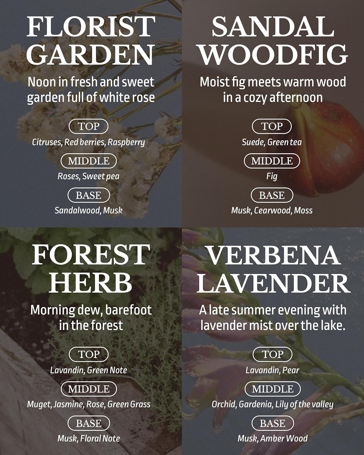 - AROMATHERAPY-INSPIRED SCENTS: Each fragrance offers a unique sensory experience - from calming lavender citrus to refreshing garden florals, forest herbs, and warm sandalwood fig. Transform your hair routine into a luxurious, spa-like experience.