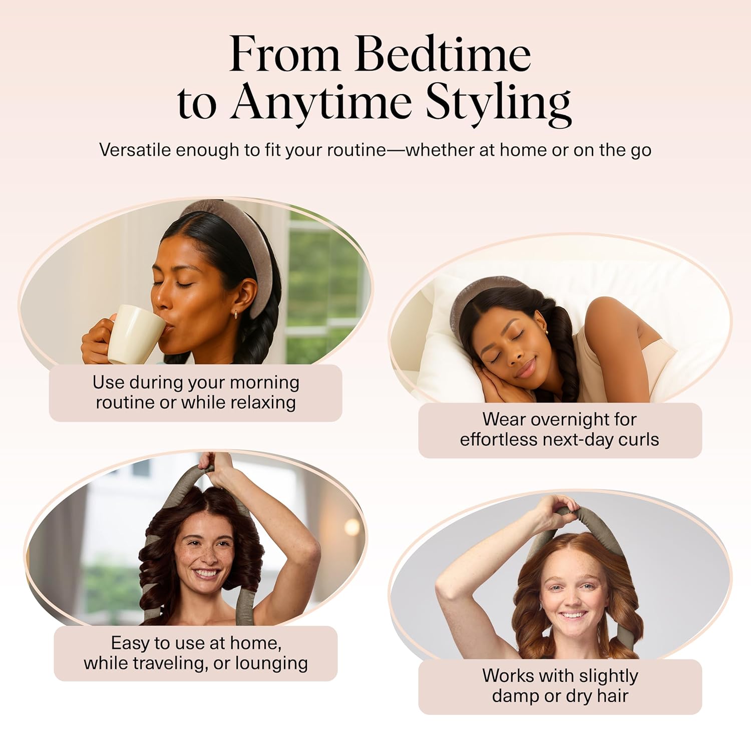 • EFFORTLESS HEATLESS STYLING – Skip the hot tools and protect your hair from damage with this heatless curler set. The soft, flexible heatless curling rod transforms dry or damp strands into bouncy, salon-inspired curls and waves, giving you a healthy, natural-looking style without heat.