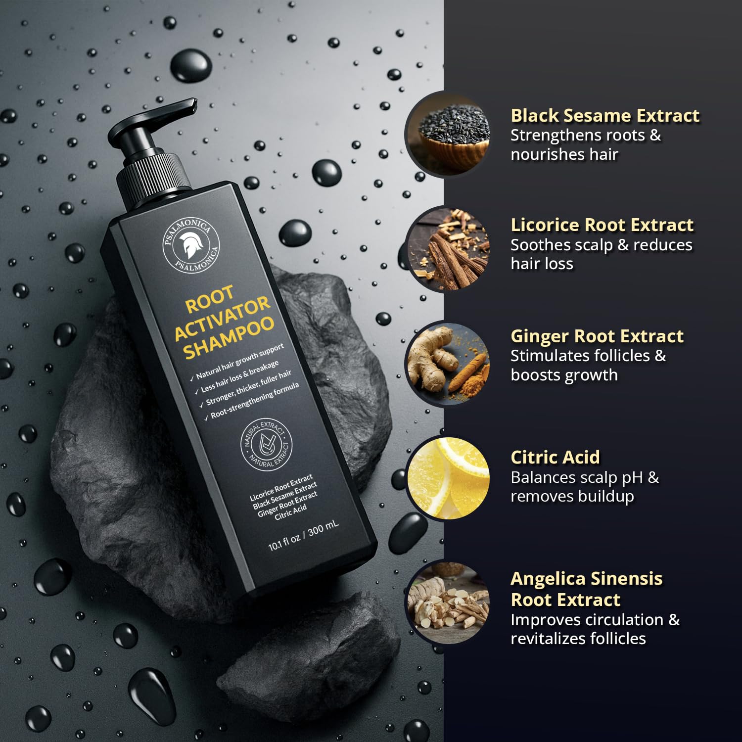 - 🌿 Herbal Formula for Hair Regrowth: Enriched with over 12 herbal ingredients, including Ginger Root, Black Sesame, Polygonum Multiflorum, Angelica Sinensis, Licorice Root extract and Rosemary Oil, this shampoo supports healthy hair growth from the scalp up.