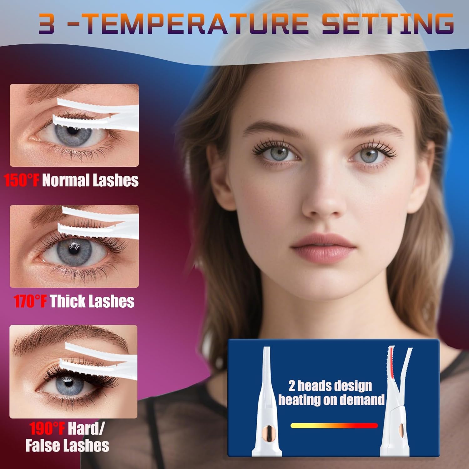 - Adjust Temperature Mode - Our heated eye lash curler comes with 3 temperature settings from 150°F to 190°F to gently curl your lashes and create stunning curls for amazing curling effect for different types of eyelashes, will not frizzing or pinching them