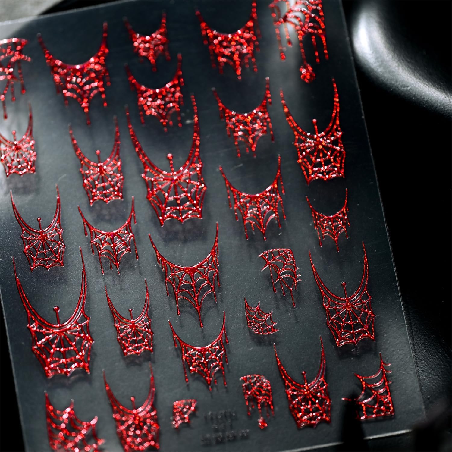 - Self-Adhesive Design: 5D self-adhesive red spider web nail decals for nail art design is simple and quick to use, Halloween nail art decals work great on bare nails, they will stay on for a long time and will not peel off your nails, enjoy the feeling of nail art
