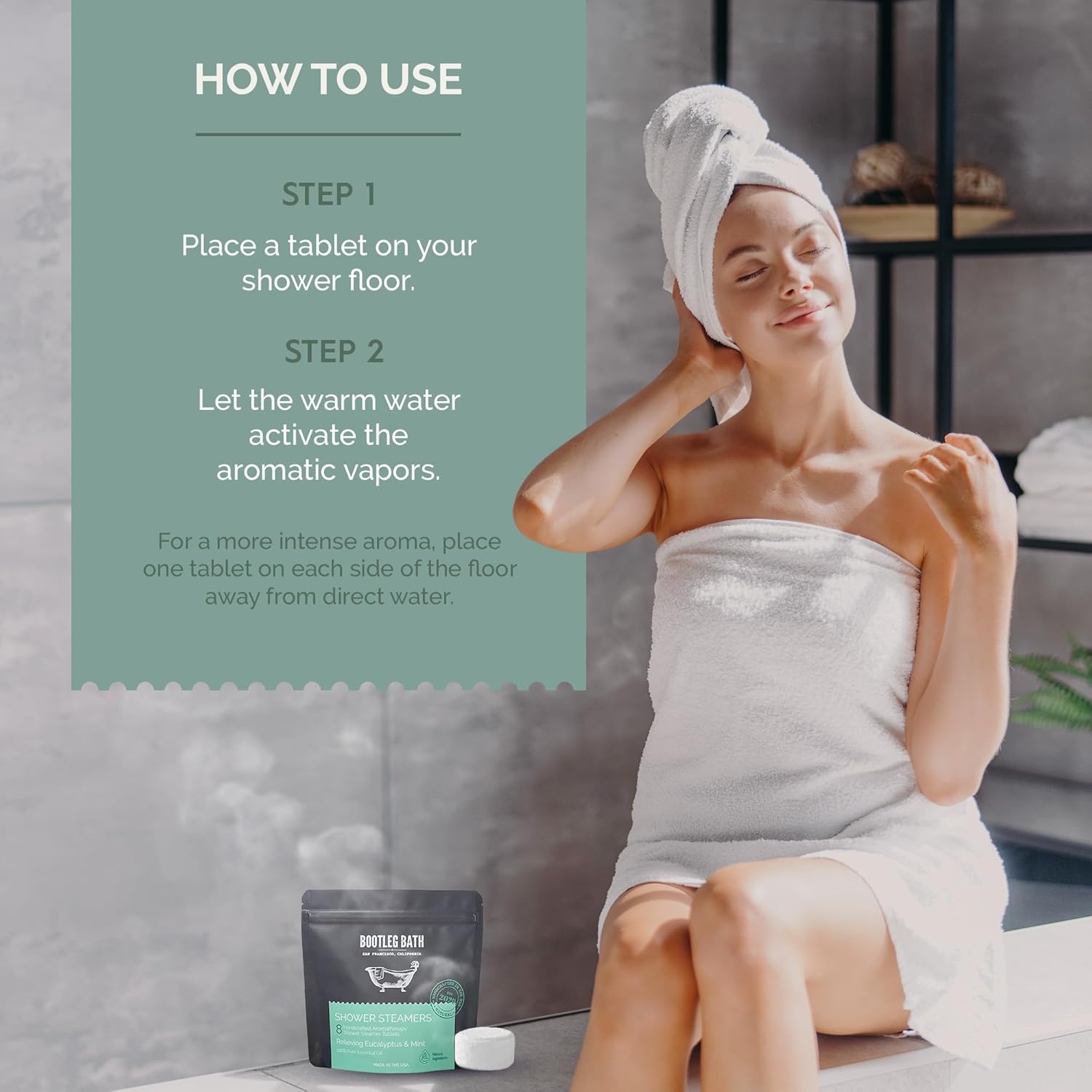 - Easy to Use - Simply place a tablet in the corner of your shower floor and let the warm water activate the release of aromatic vapors. No hassle, no mess – just pure relaxation